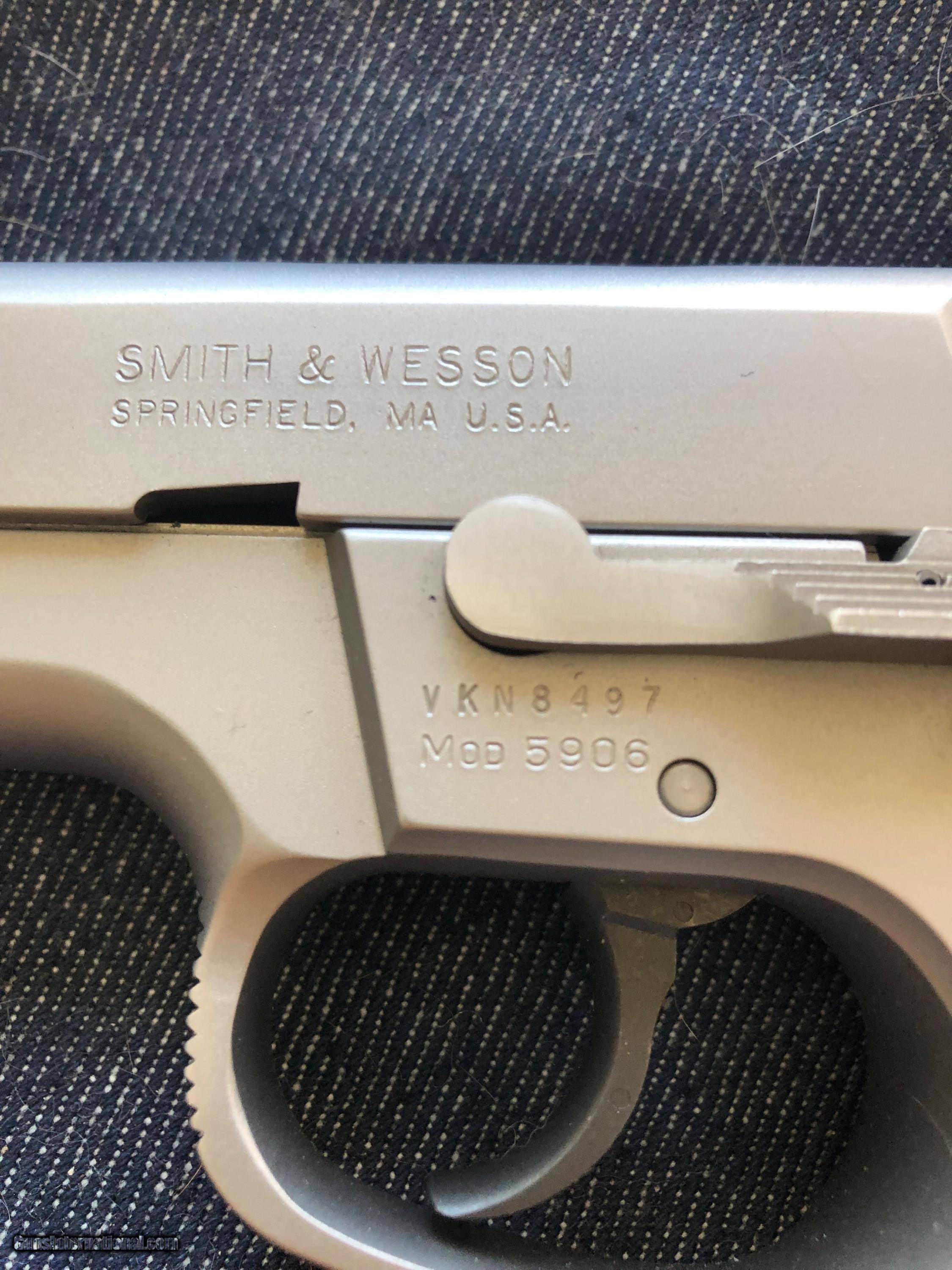 Description: Smith & Wesson Model 5906 serial number VKN8497 - .excellent condition - gunsmith inspected - comes with 2 leather holsters, 2 leather mag holders 1 soft case, 1 nylon multiple mag holder which holds 5 mags and 8 mags - 5-15 round and 3-10 round - also, enough ammo to fill all the mags. Need to sell to purchase another gun. Great deal. Don't miss out. FREE shipping to your FFL. I work in a GunShop and had this inspected and approved by our gunsmith - 100% guaranteed. . 5906 in excellent, gunsmith inspected and approved condition ($450) 2- Galco OWB holsters ($50-60 ea.) $120, Soft case ($25), vinyl mag holder for 5 mags ($25), 8-59 or 5906 mags ($25 ea.) $200, 2 leather mag holders ($25-$30 ea.) $60. and 105 rounds 9mm both hollow point and fmj. ($50-$75). Hopefully won't last long - great deal on a great gun. S&W quality. FREE SHIPPING to your FFL. SOLD Handgun Caliber: 9x19mm Parabellum (9mm Luger, 9x19mm NATO) Manufacturer: S&W Model: 5906 Serial Number: VKN8497 Condition: Excellent Metal Condition: Excellent Bore Condition: Excellent |