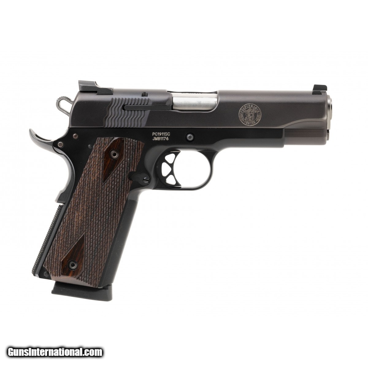 Performance Center 4.25"" carry gun. Has a lightweight frame, black finish and wood grips. Excellent condition with PC silver case.