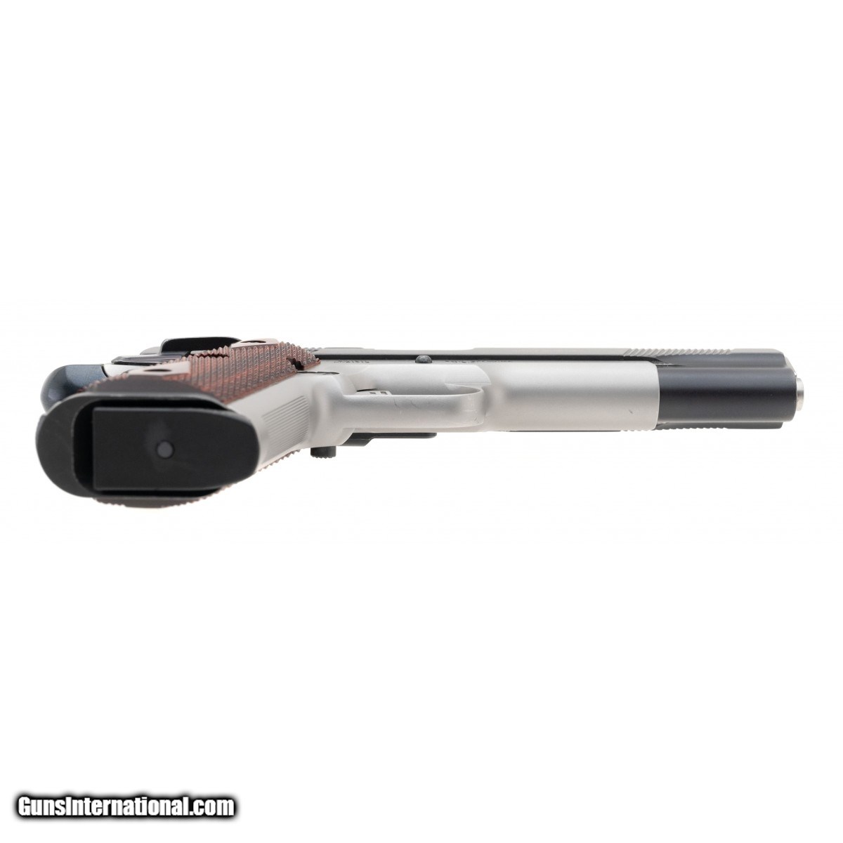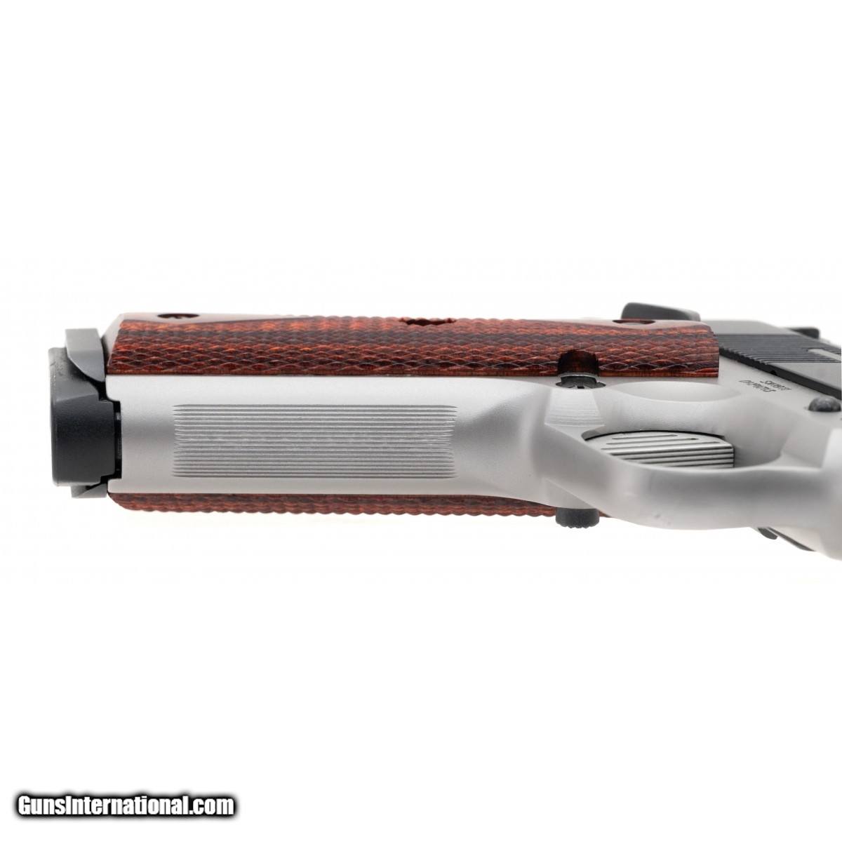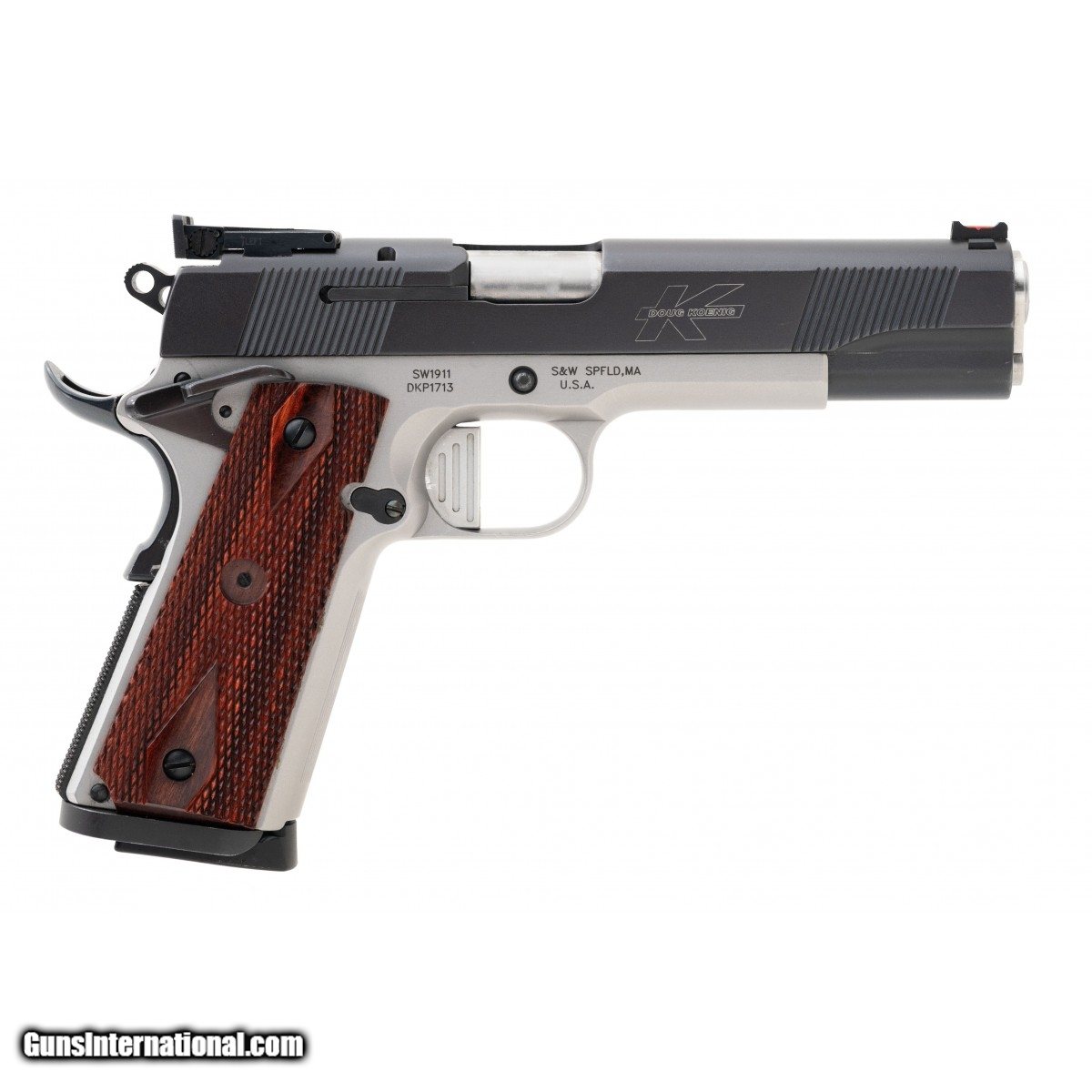 SN:DKP1713. Modern production, .45ACP with a 5"" barrel Bore is in excellent condition. Full size 1911 with diamond pattern wood grips, two tone frame and full length guide rod. Overall condition is excellent.