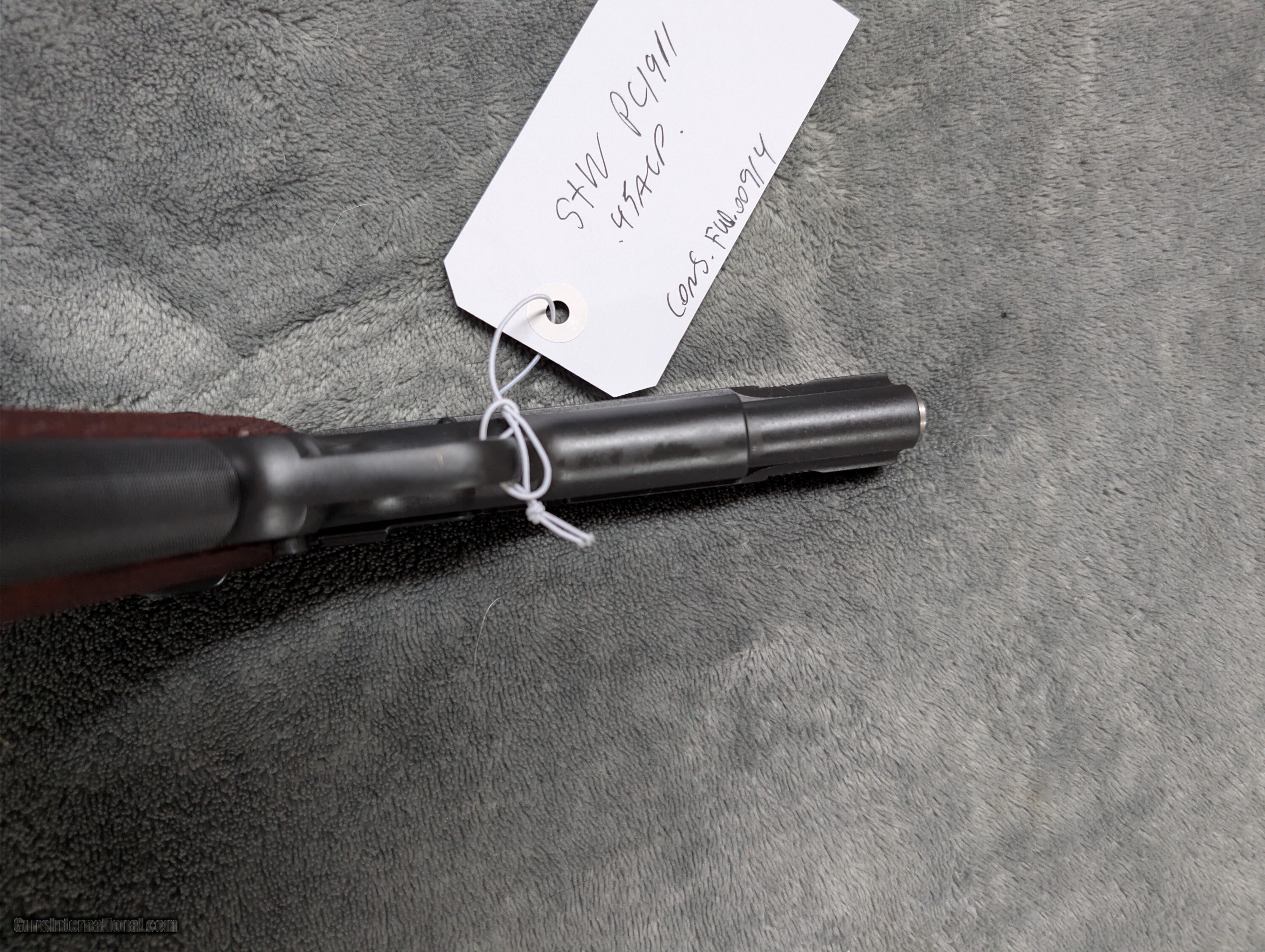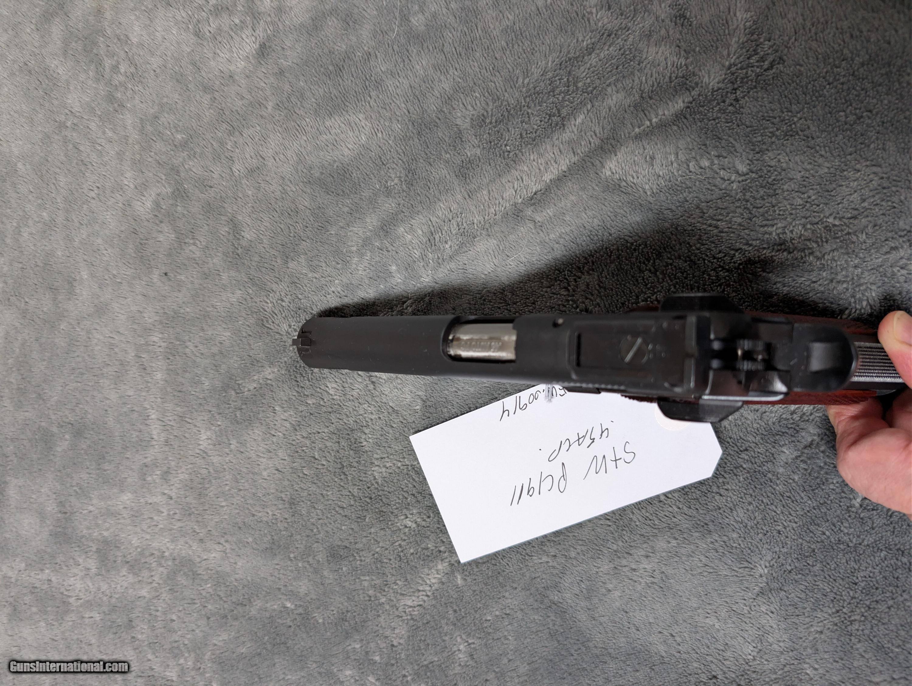 Description: CONSIGNED This Smith & Wesson PC1911 in .45 ACP WITH 5" BARREL REMAINS IN EXCELLENT CONDITION, IT SHOWS ALOST NO SIGNS OF ANY REAL USAGE. PRETTY MUCH ALL THE ORIGINAL FINISH IS INTACT, THERE IS A ULTRA TINY AMOUNT OF EDGE WEAR ON THE LEADING EDGE OF THE MAG WELL FUNNEL. THIS MODEL FEATURES, A FULL LENGTH GUIDE ROD, WILSON COMBAT BOMAR STYLE ADJUSTABLE SIGHTS, AMBIDEXTROUS SAFETY, EXTENDED MAG WELL FUNNEL, FRONT AND REAR COCKING SERATIONS, FINELY CHECKERED FRONT STRAP, MATCH GRADE BARREL, SKELETONIZED ALUMINUM TRIGGER WITH ADJUSTABLE OVERTRAVEL STOP., HEAVY DUTY EXTRACTOR, AND BEAVERTAIL GRIP SAFETY. THE PERFOMANCE CENTER 1911'S ARE A BIG STEP UP OV ETHE NORMAL PRODUCTION 1911'S PRODUCED BY S&W, THEY HAVE MANY UPGRADED COMPONETS AND ARE HAND FIT/ ASSEMBLED. PLEASE SEE PICTURES. Handgun Caliber: .45 ACP (.45 Auto) Manufacturer: SMITH & WESSON Model: PC1911 Serial Number: JMB1241 Barrel Length: 5 Condition: EXCELLENT BARELY USED Metal Condition: EXCELLENT Wood Condition: EXCELLENT Bore Condition: EXCELLENT Sights: WILSON COMBAT FRONT AND BOMAR SYLE REAR ADJUSTABLE Case: NO CASE OR BOX Item Location: 49253 Price: $1,695.00 Shipping: $55.00 Contact Seller |