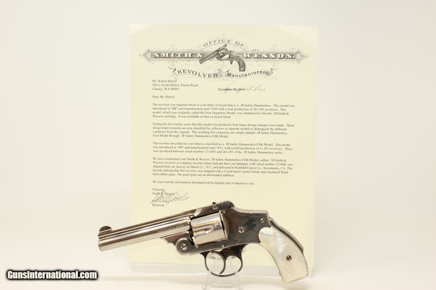 LETTERED 1911 Smith & Wesson .38 S&W LemonSqueezer Nickel & Pearl! Shipped to SACRAMENTO, CA in 1911!