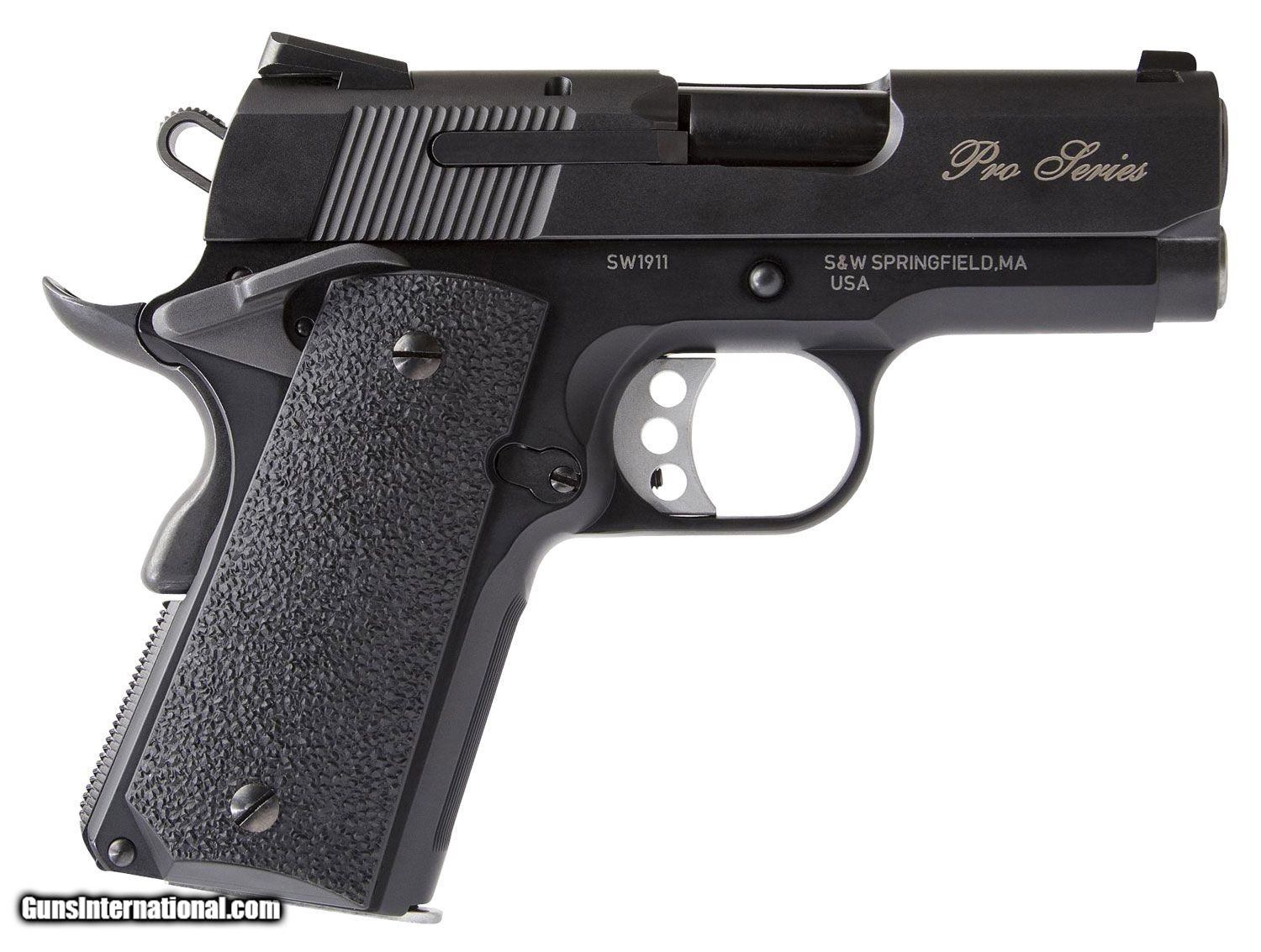 Description: Manufacturer: Smith & Wesson Model: PERFORMANCE CENTER® SW1911 PRO SERIES® SKU: 178053 Action: Single Caliber: 9mm Capacity: 8 Rounds Barrel Length: 3" Stainless Steel Frame: Scandium Alloy, Black Overall Length: 6.9" Grips: Fully Stippled Synthetic Sights: Front- Dovetail White Dot, Rear- Fixed White 2-Dot Weight: 25 oz Safety: Grip and Thumb Completing the line between main production and the Performance Center, the Smith & Wesson Pro Series represents the next step from standard models. These firearms are offered with a variety of enhancements yet still remain true to "stock." Bringing competition specifications and features to factory models, the Pro Series offer that ready-to-go package while still maintaining production line integrity.