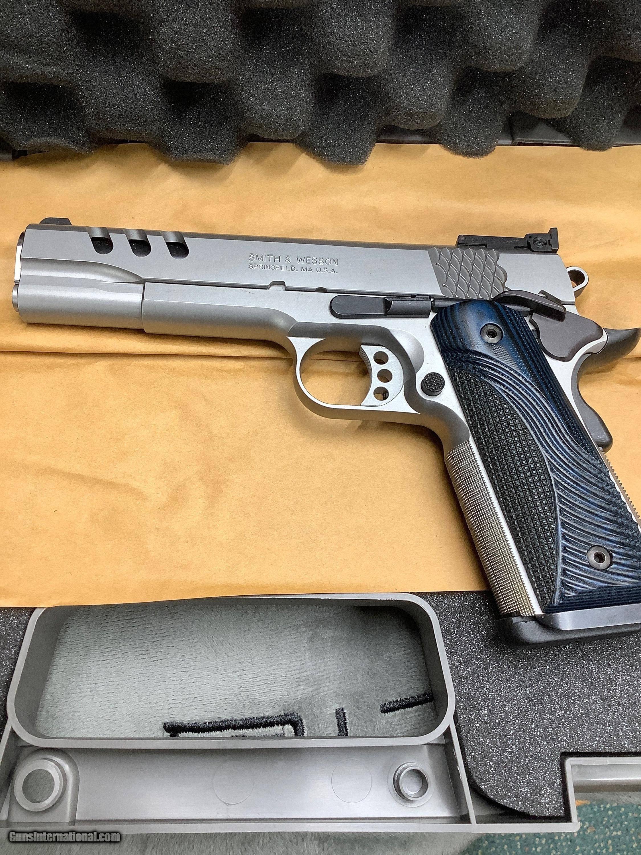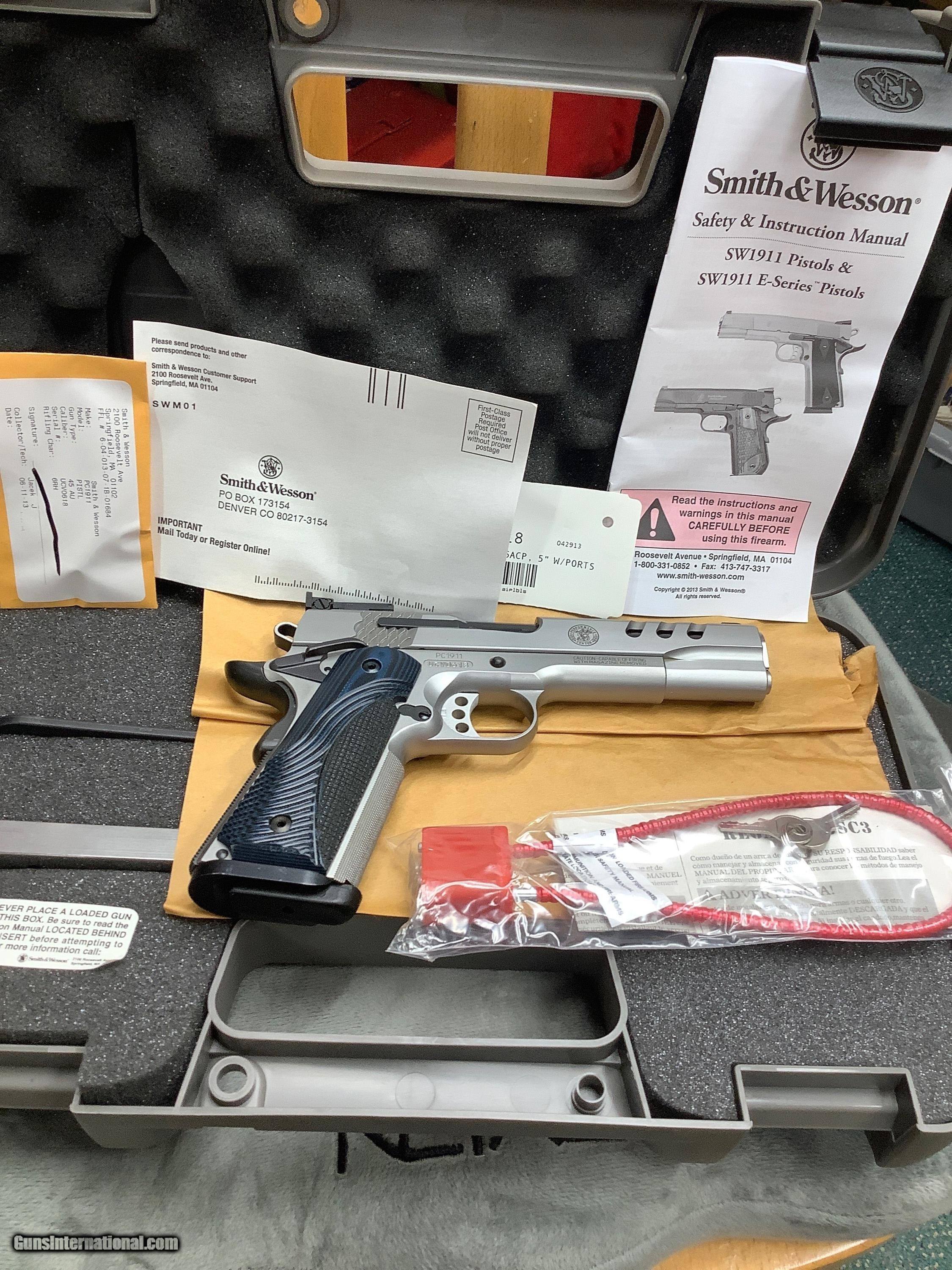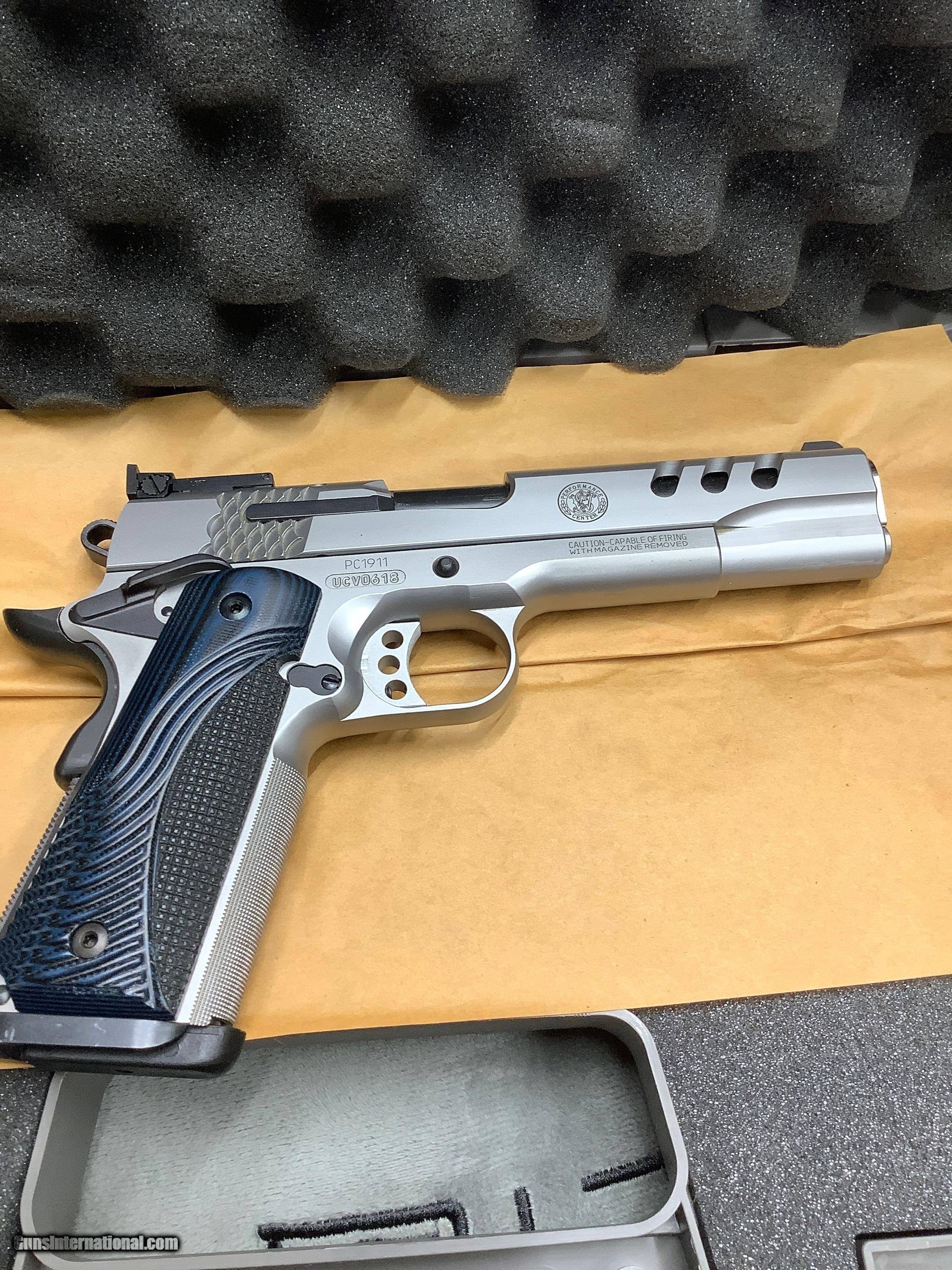 Description: Smith Wesson Performance Center 1911,5" 45acp,throated barrel with precision crown muzzle,ambidextrous frame safety, ported slide with lighting cuts,Matt stainless (2) 8+1 round mags, adjustable rear sight,weight 40.5 oz, blue grips. New in Box,unfired!!! Plus Shipping to your FFL from my FFL in PA. This pistol is gorgeous and at a great price plus no tax. No sales to CA or HI. SOLD |