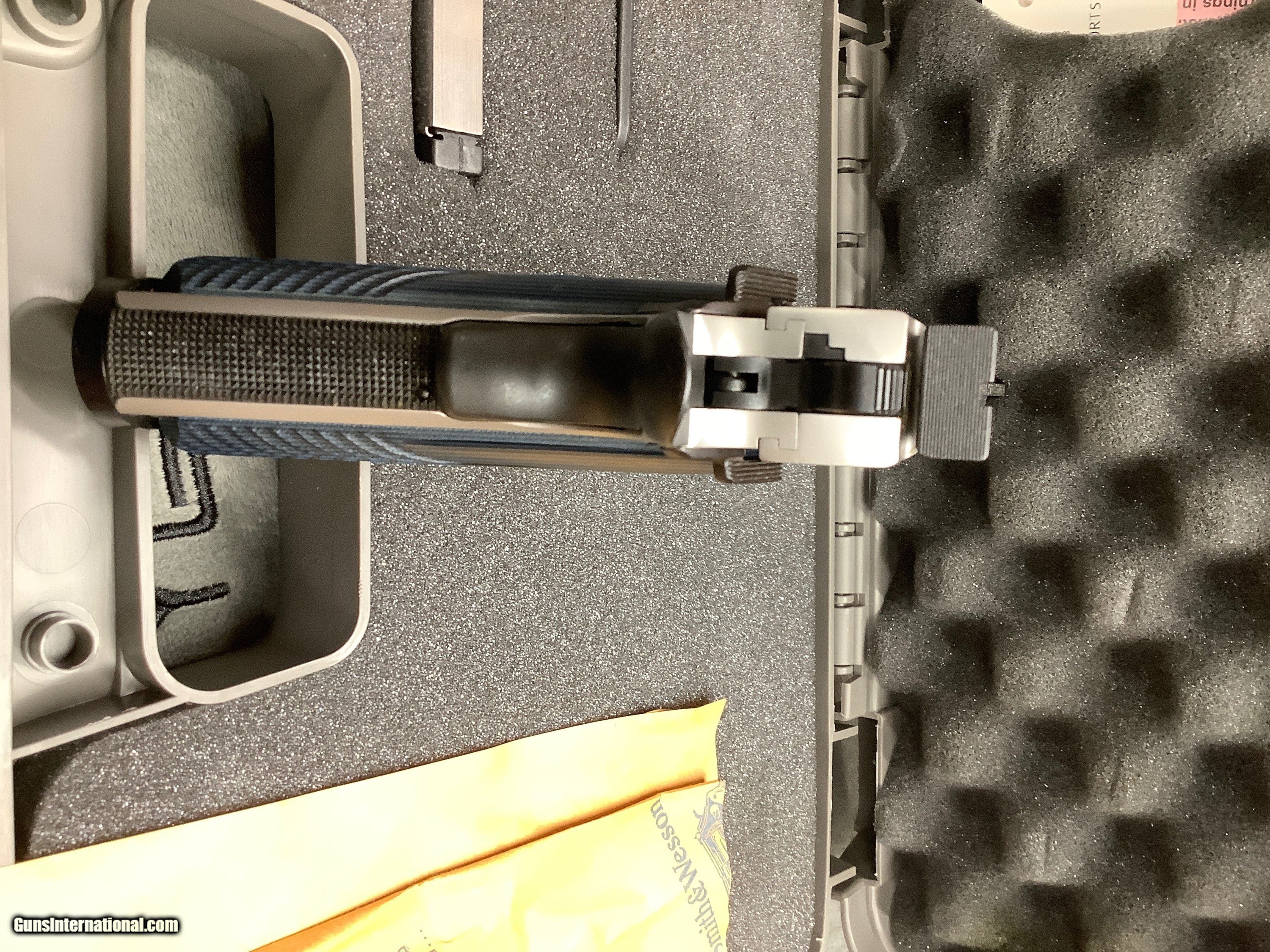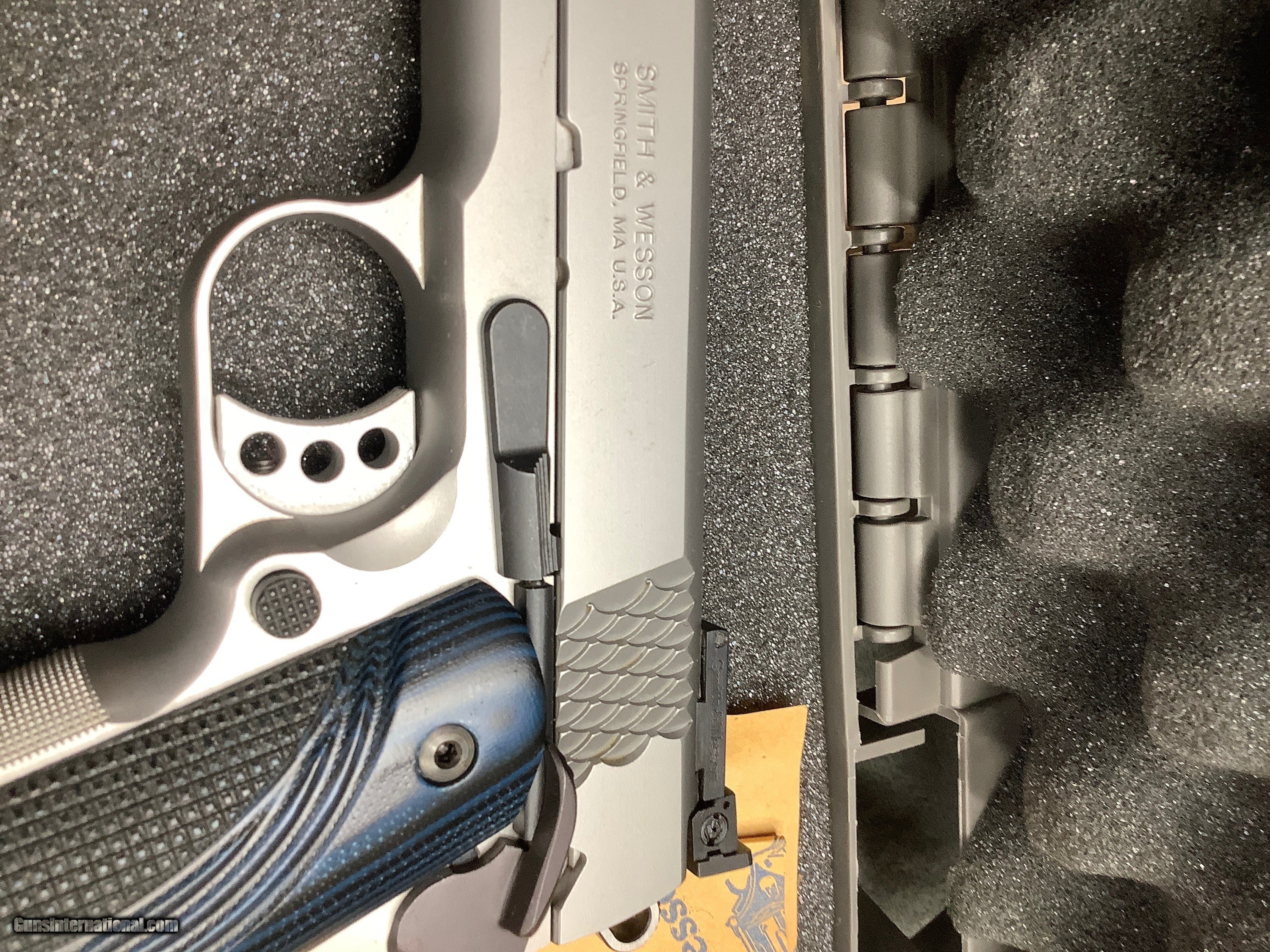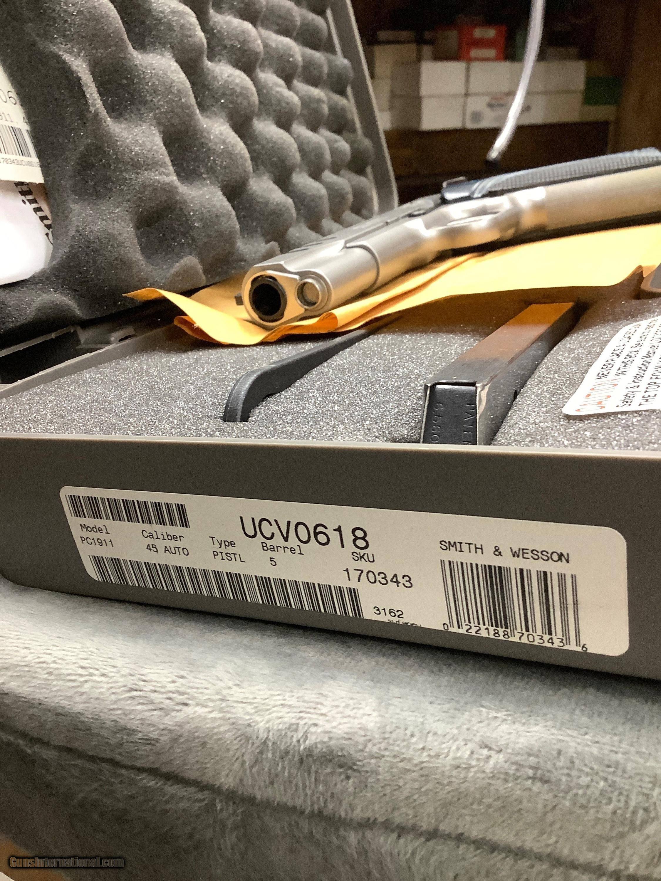 Description: Smith Wesson Performance Center 1911,5" 45acp,throated barrel with precision crown muzzle,ambidextrous frame safety, ported slide with lighting cuts,Matt stainless (2) 8+1 round mags, adjustable rear sight,weight 40.5 oz, blue grips. New in Box,unfired!!! Plus Shipping to your FFL from my FFL in PA. This pistol is gorgeous and at a great price plus no tax. No sales to CA or HI. SOLD |