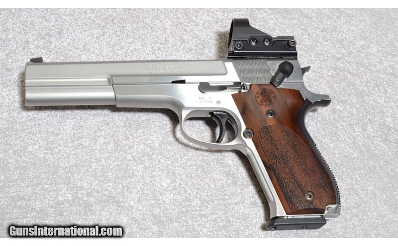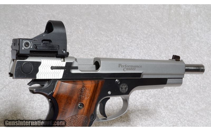 Description: The 952 comes from the Smith & Wesson Performance Center and features a stainless steel match barrel, hand fitted slide and frame, and all parts are highly polished for smooth functioning. Other features include a titanium coated spherical barrel bushing, 9 round magazine, loaded chamber indicator, dovetail post front and adjustable Wilson rear sight, carbon steel frame and slide, two-piece wood grip panels with alloy backstrap and a slide mounted decocking lever. 9mm Luger SOLD Metal Condition: Excellent Wood Condition: Excellent Bore Condition: Excellent Barrels: 6" Barrel Triggers: Performance Center Target Trigger Weight: 2 7/8 Lbs. Sights: Wide Blade Front Sight and Factory Rear Sight with Ultra Dot L/T Red Dot Sight Item Location: Tulalip, WA |