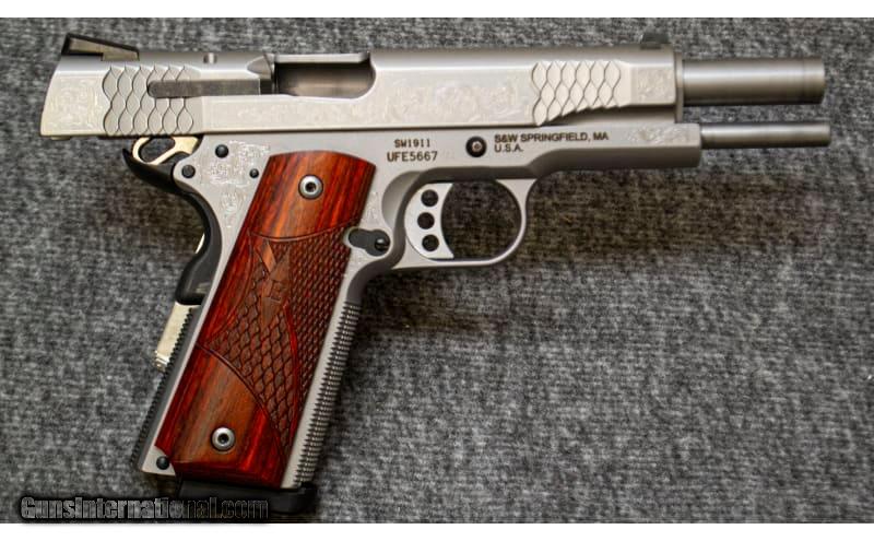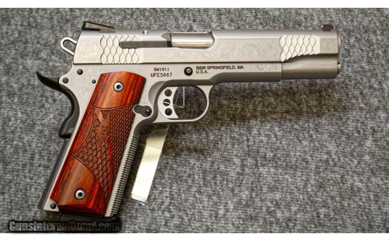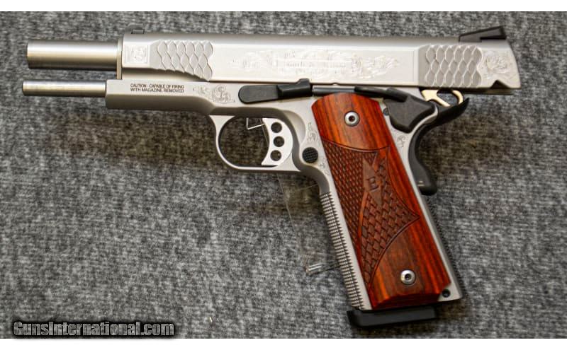 Description: Smith & Wesson SW1911 in 45 Auto. This is in great condition a few marks from being used. This is beautiful engraved and is part of the E Series from Smith & Wesson. It comes with one eight round magazine .45 Auto SOLD Barrels: 5 inch Weight: 21 Oz. Item Location: Charleston, WV |