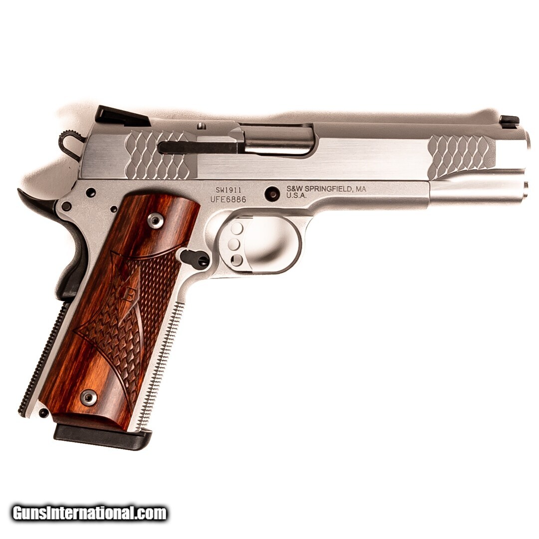 Description: Guns Listing ID: 675216 The Smith & Wesson SW1911 E-Series is a stainless-steel variant of John Browning’s original Colt 1911. Well made, accurate, and dependable, this is a great big bore self-defense sidearm. Two 8-round magazines are included. Get the best bang for your buck when you get a Certified Used Firearm . When you see the Certified Used stamp on any of our firearms, you can be confident that you’re getting exactly what you want – a gun only in very good to excellent condition and held to the highest quality standard. All Certified Used Guns come with a ‘no questions asked’ return policy . PLUS, ALL CERTIFIED USED GUNS SHIP FREE! SOLD Manufacturer: SMITH & WESSON Model: SW1911 E Series Caliber Info: .45 ACP Condition: Used - Non-Certified Barrels: 5 BARREL Finish: STAINLESS |