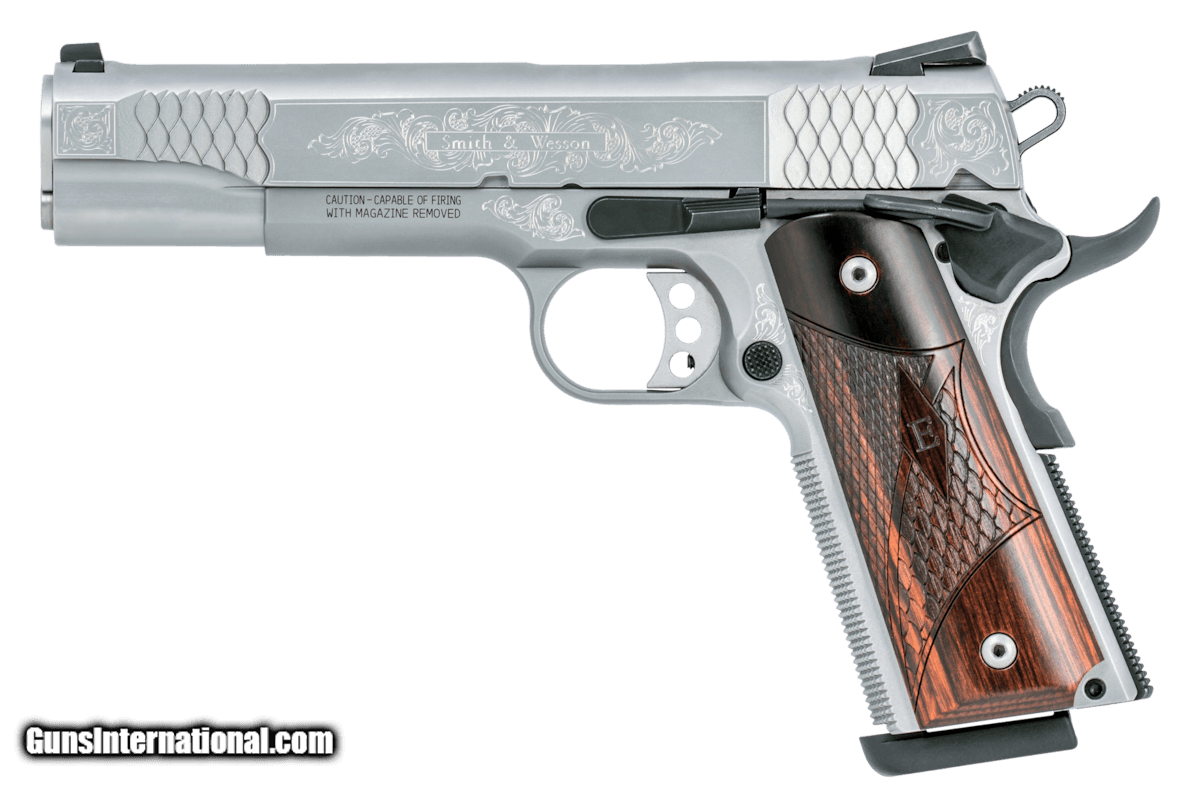 Description: Guns Listing ID: 54025 Smith Wessons premium version of the classic 1911 the SW1911 E-Series is a line of single-action semi-automatic handguns chambered in 45 ACP with an 81 capacity and a frame constructed from steel. The checkered wood laminate grip employs a positive hold and includes a thumb and beaver-tail grip safety. Other features include an external extractor skeletonized hammer and trigger and front slide serrations. The SW1911 E-Series is suitable for personal protection and home defense. Details Caliber .45 ACP - Capacity 81 Rounds - Action Single Action Only - Barrel Length 5 (12.7 cm) - Front Sight White Dot - Rear Sight White 2-Dot - Grip Wood - Weight 39.8oz. (1128.3 g) - Overall Length 8.7 (22.1 cm) - Frame Material Stainless Steel - Slide Material Stainless Steel - Finish Glass Bead - Other Features - Glass Bead Finish - Machine Scroll Engraving - Engraved Wooden Presentation Case SOLD Manufacturer: SMITH & WESSON Model: SW1911 ENGRAVED Caliber Info: 45 ACP Condition: new Barrels: 5 barrel Finish: STAINLESS |