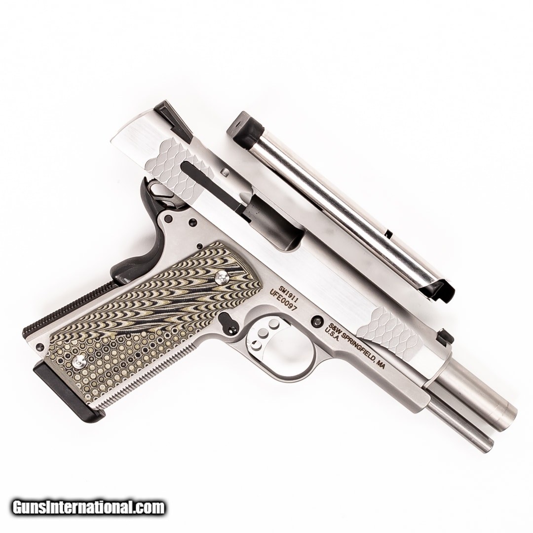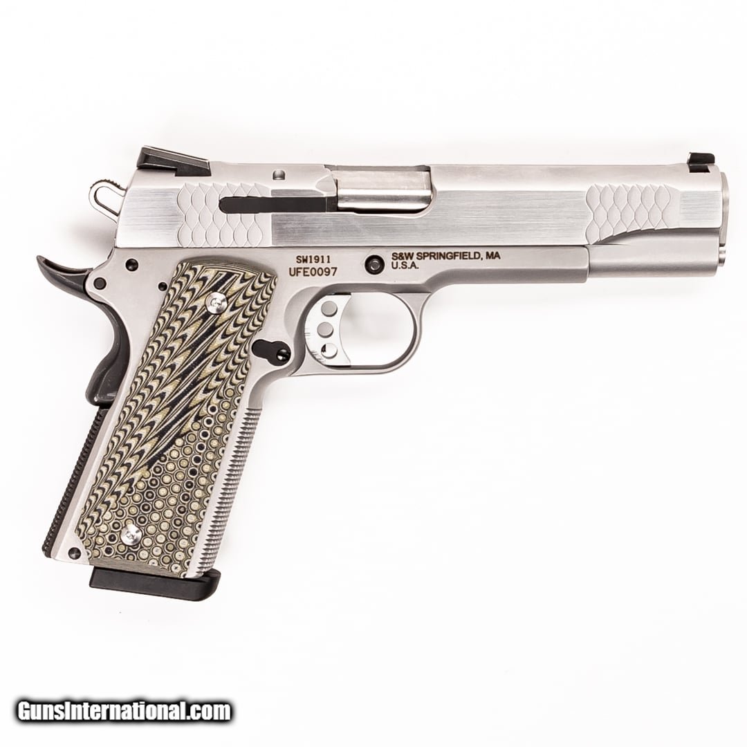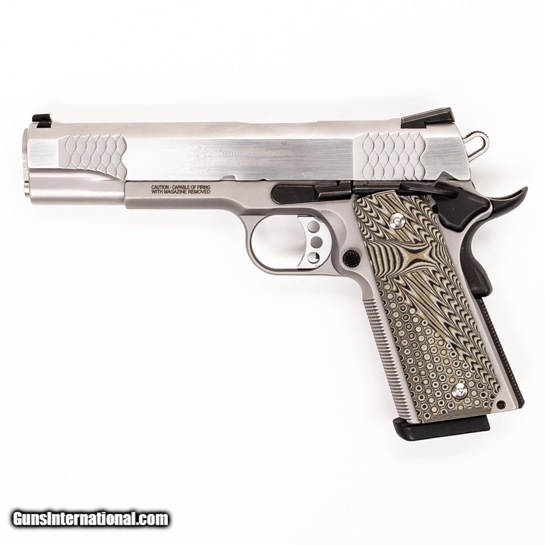 Description: Guns Listing ID: 399591 The Smith & Wesson SW1911 is a stainless-steel pistol patterned off John Browning's original Colt 1911. Well made, accurate, and dependable, this is a great big bore self-defense sidearm. 2 magazines and the original wood grips are included. Installed grips are G10. SOLD Manufacturer: SMITH & WESSON Model: SW1911 Caliber Info: .45 ACP Condition: Used - Certified Barrels: 5 BARREL Finish: STAINLESS |