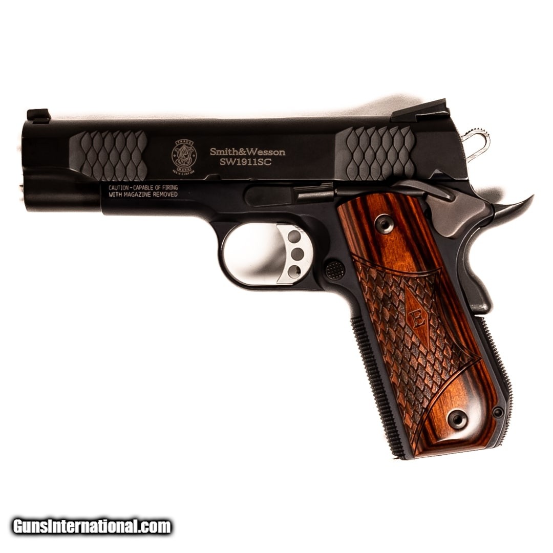 Description: Guns Listing ID: 828999 Precision. Accuracy. Performance. Smith & Wesson‚‚s variation of John Moses Browning‚‚s extremely popular 1911 design can be seen in the production of SW1911SC series. These 1911s are manufactured to exacting specs, with an emphasis on quality, precision, and detail. Designed for everything from competition shooting to home defense, it‚‚s a dependable handgun that‚‚s made to last. This model features a safety and Trijicon night sights. Purchase includes the original case, owner‚‚s manual, one 7-round magazine, and three 8-round magazines. Get the best bang for your buck when you get a Certified Used Firearm . When you see the Certified Used stamp on any of our firearms, you can be confident that you’re getting exactly what you want – a gun only in very good to excellent condition and held to the highest quality standard. All Certified Used Guns come with a ‘no questions asked’ return policy . PLUS, ALL CERTIFIED USED GUNS SHIP SOLD Manufacturer: SMITH & WESSON Model: SW1911SC Caliber Info: .45 ACP Condition: Used - Non-Certified Barrels: 4.2 BARREL Finish: BLACK |