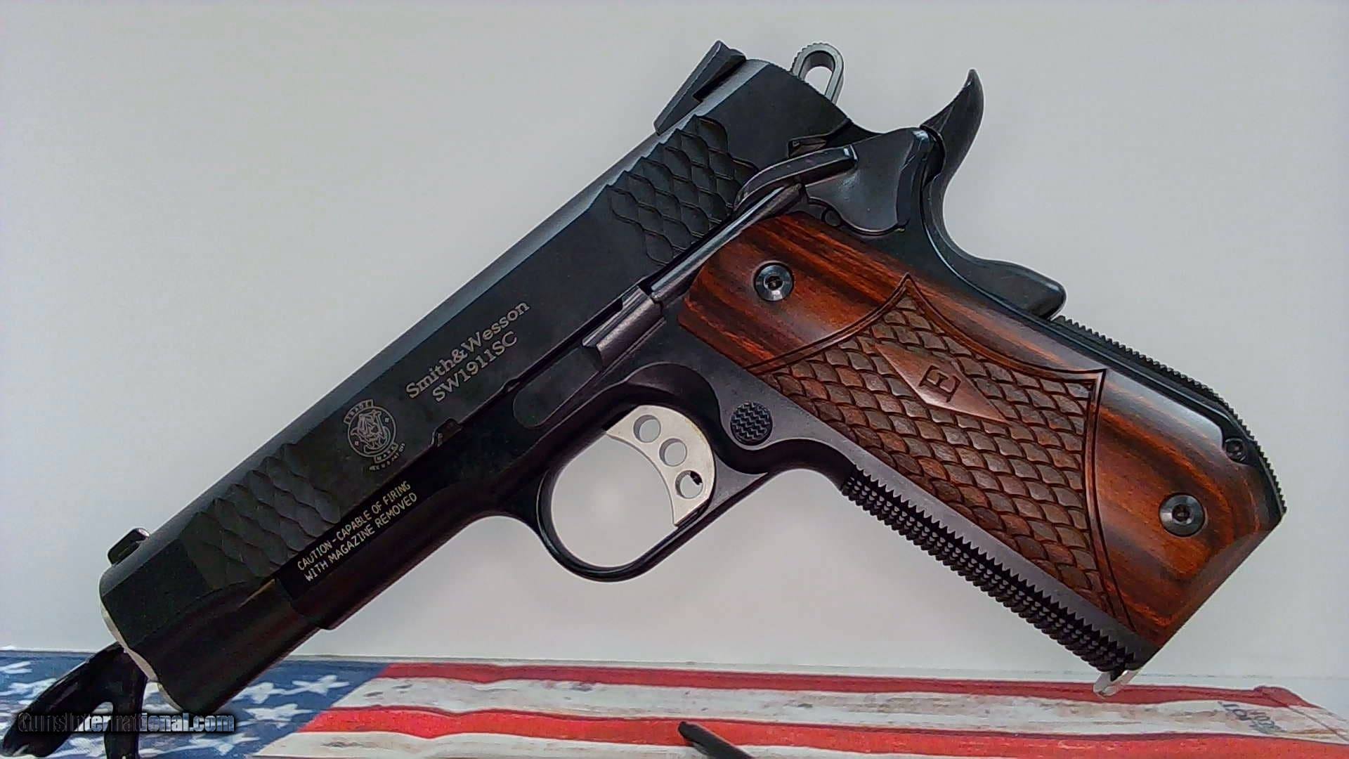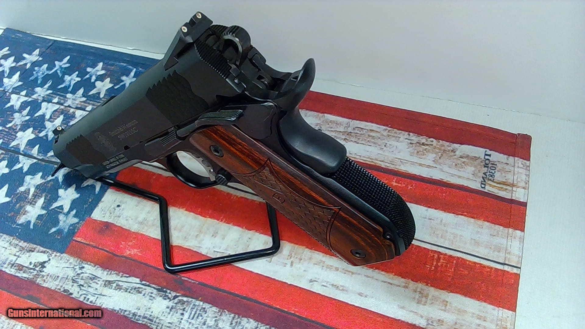 Description: Guns Listing ID: 840661 Extremely well kept Smith & Wesson SW1911SC. No visible signs of wear and the wood laminate grips are beautiful! This sale is for the firearm and one 8 round magazine, no original box or other accessories. The Smith and Wesson 1911 E-Series delivers high performance, reliability, and accuracy. It comes chambered in .45 ACP with a 4.25 inch barrel. Features include a wooden laminate grip, night sights, a manual thumb safety, and one 8 round magazine. MANUFACTURER: Smith and Wesson FAMILY: 1911 Style Pistol Series MODEL: SW1911SC MFG MODEL NO: 108483 UPC: 022188084832 SOLD Manufacturer: SMITH & WESSON Model: SW1911SC Caliber Info: .45 ACP Condition: Used - Non-Certified Barrels: 4.25 BARREL Finish: BLACK AND WOOD |