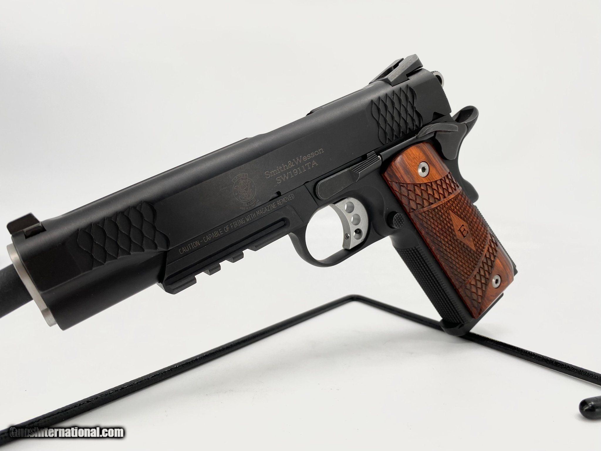 Description: Guns Listing ID: 1261017 Smith & Wesson SW1911TA 45acp with box & x2 mags in great condition and perfect working order. SOLD Manufacturer: SMITH & WESSON Model: SW1911TA Caliber Info: .45 ACP Condition: Used - Non-Certified Barrels: 5 BARREL Finish: BLACK |
