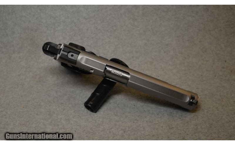 Description: This is a Smith & Wesson SW1911TA pistol in .45 Auto with a 5" barrel. Overall, this pistol is in outstanding condition. The stainless steel slide is in pristine condition, there aren't any large markings. The frame does have a tiny discoloration at the bottom behind the grips. This pistol does come with its original hard case. .45 Auto SOLD Barrels: 5 inch Item Location: Hazelwood, MO |