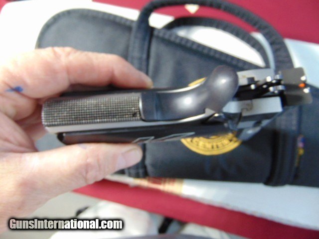 Description: SMITH & WESSON DOUG KOENIG PC1911-2 PERFORMANCE CENTER 1911 SEMIA UTO PISTOL . CALIBER 38 SUPER. SER# DKC0147. STAINLESS FINISH ADJUSTABLE REAR SIGHT . Smith & Wesson Performance Center Doug Koenig Model SW 1911 38 Super Semi-Automatic Pistol Matte stainless slide with "fish scale" serrations, full length guide rod, fixed front and Wilson Combat adjustable rear sight. Flat competition speed trigger, speed hammer and ambidextrous safety. Fitted with black micarta, Doug Koenig marked grips . extra recoil springs and a Performance Center soft case. Manufucture: Smith & Wesson Model: 1911 BBL: 5 inch round Stock: Guage: 38 super Finish: stainless Grips: micarta Serial Number: DKC0147 SOLD |