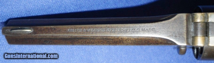 Description: ANTIQUE 1860s CIVIL WAR ERA SMITH & WESSON No 1 SECOND ISSUE .22 SHORT CALIBER TIP-UP REVOLVER. SERIAL # 62669, ALL CORRECT MATCHING NUMBERS INCLUDING GRIP PANEL STAMP NUMBER TO THE GUN, MFG. 1860-1868. BARREL 3 3/16", BORE HAS DISTINCT RIFLING WITH PITTING. GOOD AMOUNT OF ORIGINAL SILVER PLATE ON FRAME ABOUT 85%.OR MORE WITH SOME HIGH EDGE WEAR. ORIGINAL FINISH ON BARREL AND CYLINDER HAS FADED TO A PLEASING SMOOTH EVEN BROWN PATINA OVERALL WITH LEGIBLE PATENT DATES ON CYLINDER AND STRONG FACTORY BARREL MARKINGS. ROSEWOOD GRIPS IN NICE CONDITION WITH MINOR HANDLING MARKS AND A LIGHT CLEANING AT SOME POINT . ACTION IS CRISP, TIMES WELL,TIGHT CYLINDER LOCK-UP WITH WEAK CYLINDER STOP SPRING & BARREL LOCK-UP A LITTLE LOOSE. VERY GOOD EXAMPLE OVERALL, AS PICTURED AT A MORE THAN FAIR PRICE. ESTATE SAYS SELL ! SHIPS DIRECT TO BUYER ALL 50 STATES WHERE ALLOWED ! $20.00 S&H INCLUDES INSURANCE ! SOLD Antique: Yes Manufacturer: SMITH & WESSON Model: No 1 SECOND ISSUE Caliber Info: .22 SHORT |