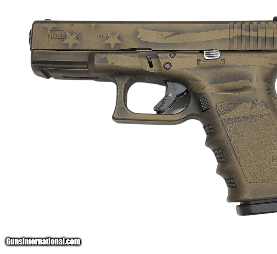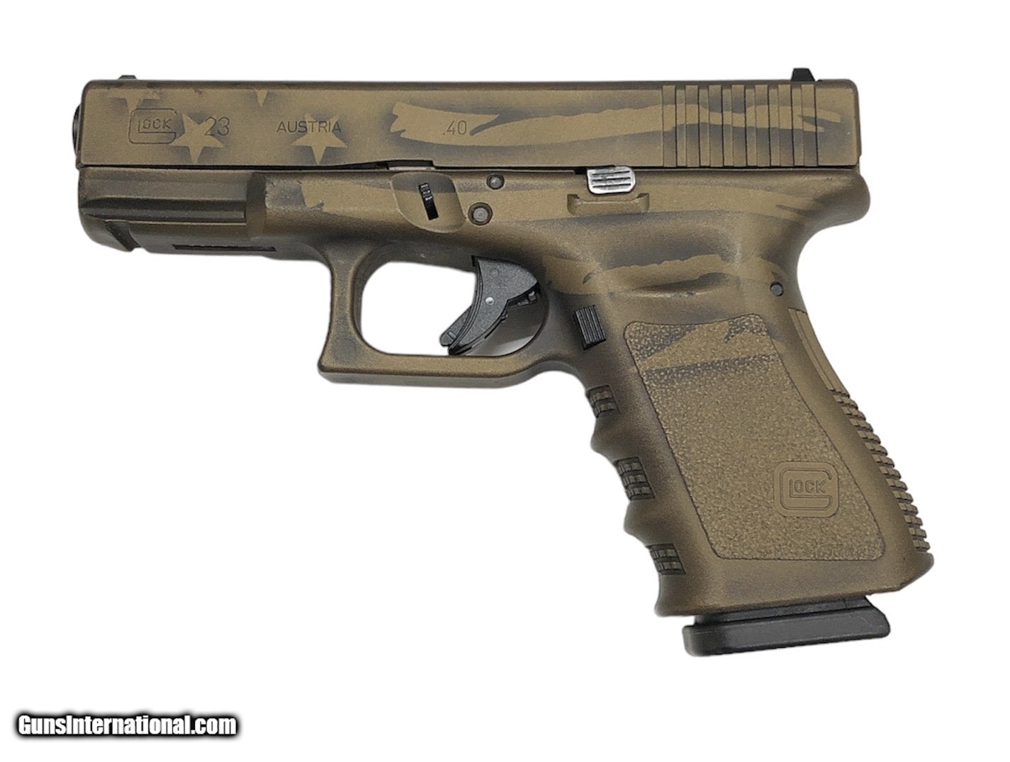 Description: Guns Listing ID: 1072765 Manufacturer: Glock Importer: Glock Model: 23 Type: Handgun Action Type: Semi-Automatic Caliber / Gauge: .40 S&W Finish: Camo Barrel Type: Single Grip Type: Polymer Barrel Length: 4 Magazine Capacity: 13 Magazine Quantity: 2 Case included: yes Condition: Used SOLD Manufacturer: GLOCK Model: 23 Caliber Info: .40 S&W Condition: Used - Non-Certified Barrels: 4 BARREL Finish: CAMO |