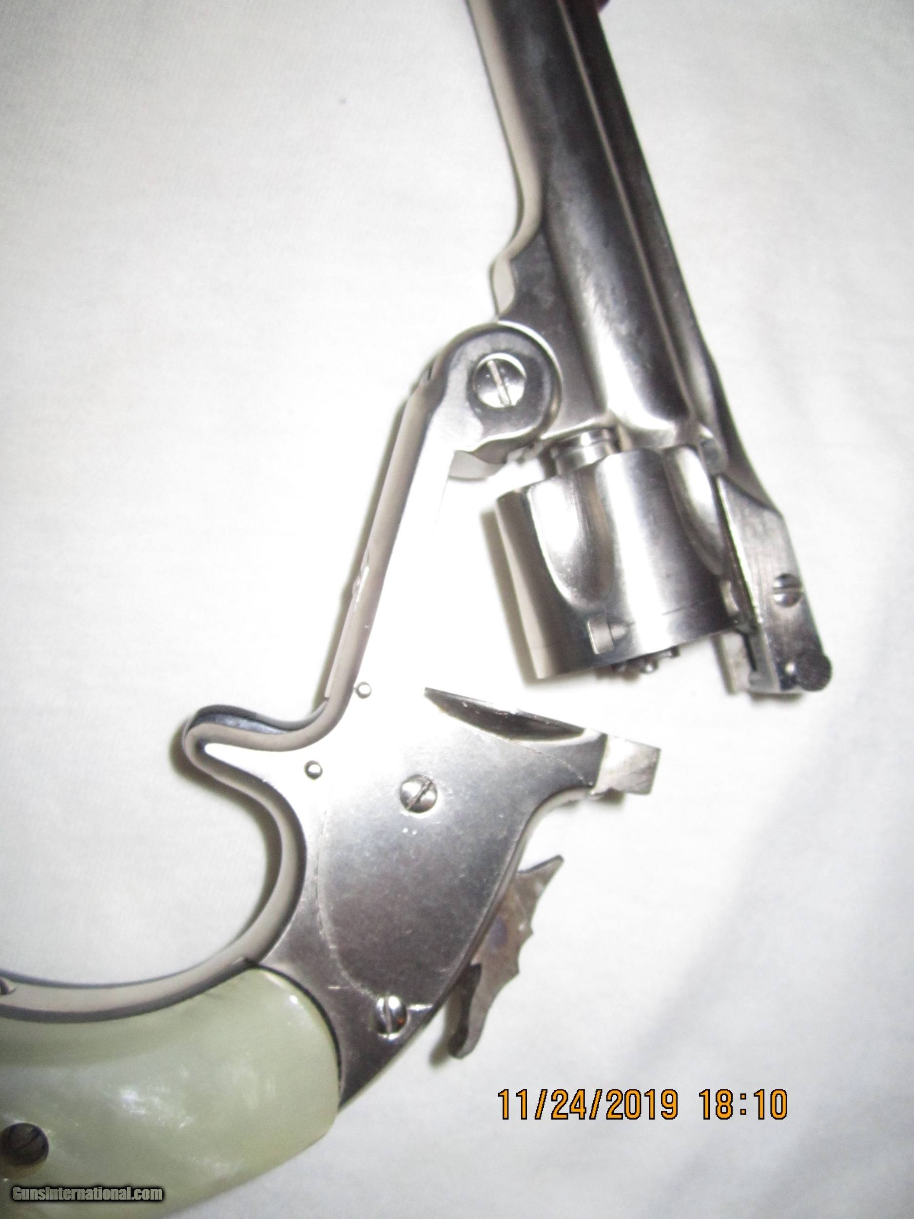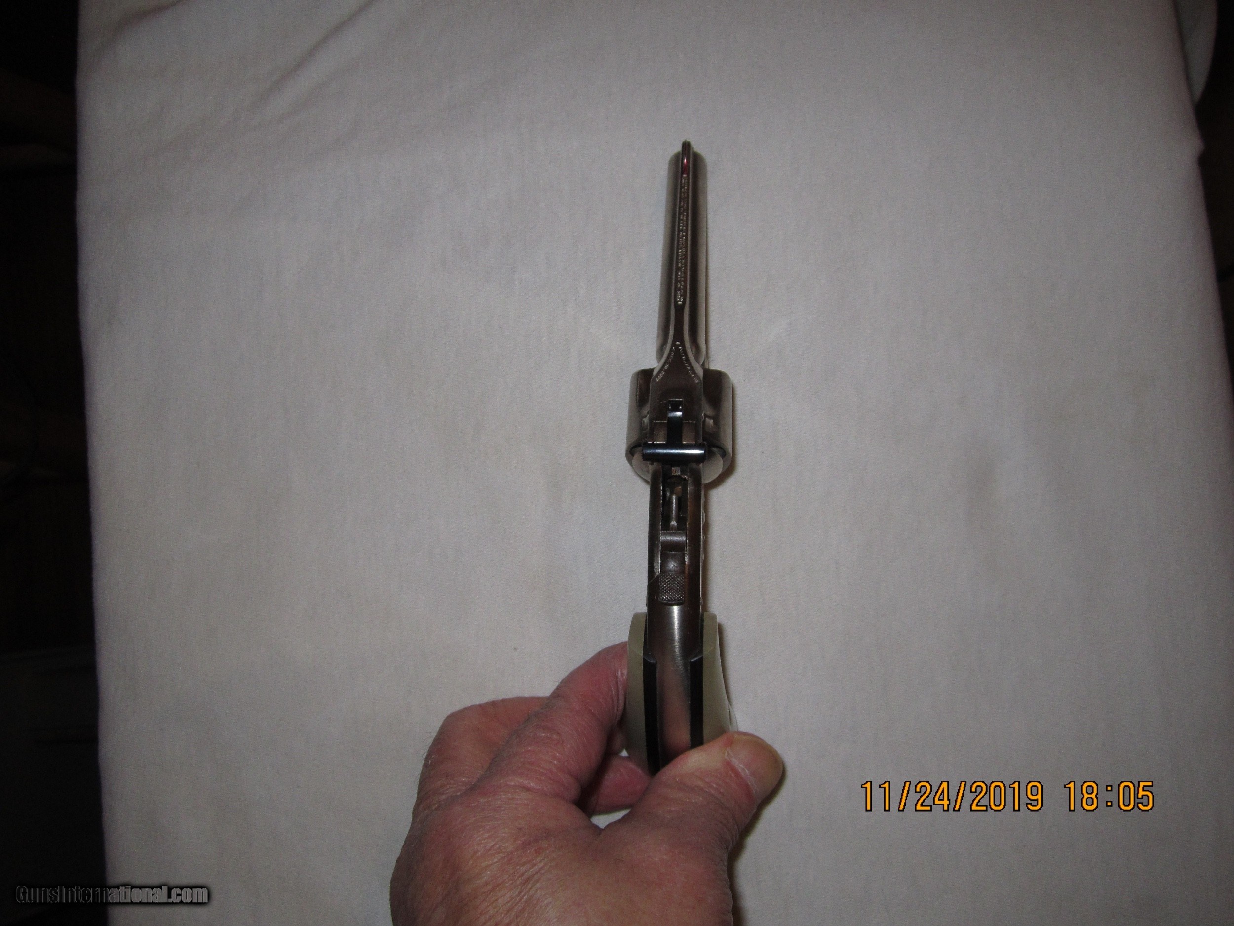 Description: SOLD SMITH AND WESSON MODEL 1 1/2 , SINGLE ACTION, .32 CENTERFIRE TOP BREAK REVOLVER, . S/N 16XXX BORE EXCELLENT, PREVIOUS OWNER POLISHED GUN AND INSTALLED NEW GRIPS. NICKEL PLATE IS ORIGINAL AND EVEN / NOT THIN. PHOTOS CANNOT REALLY SHOW HOW NICE IT IS. ACTION NEEDS VERY MINOR WORK. BOLT STOP INTERMITTENT SHIPS PRIORITY MAIL $25.00 . PAYMENT PLUS COPY OF PHOTO ID. MUST FOLLOW YOUR STATES REGULATIONS SOLD Antique: Yes |