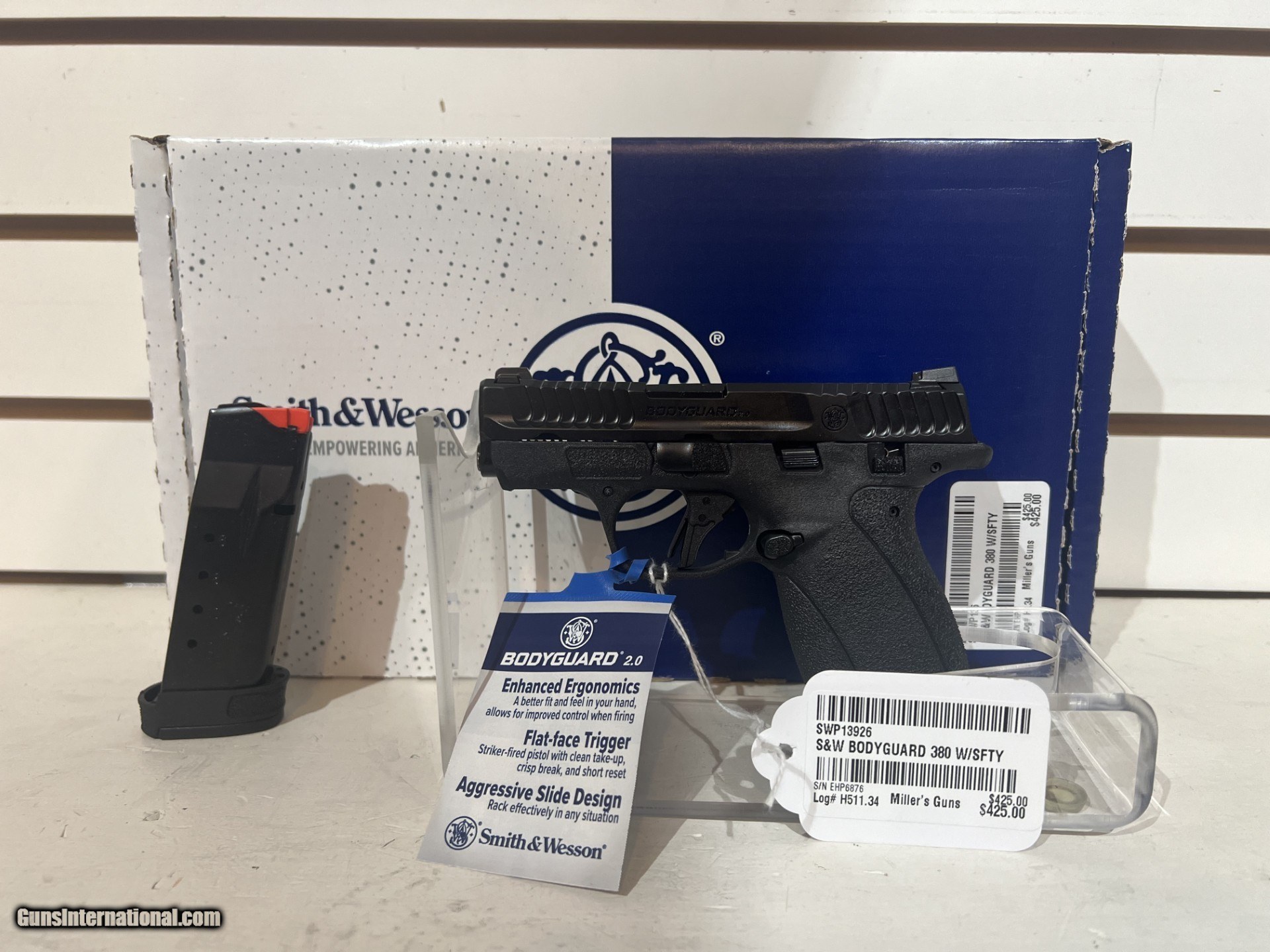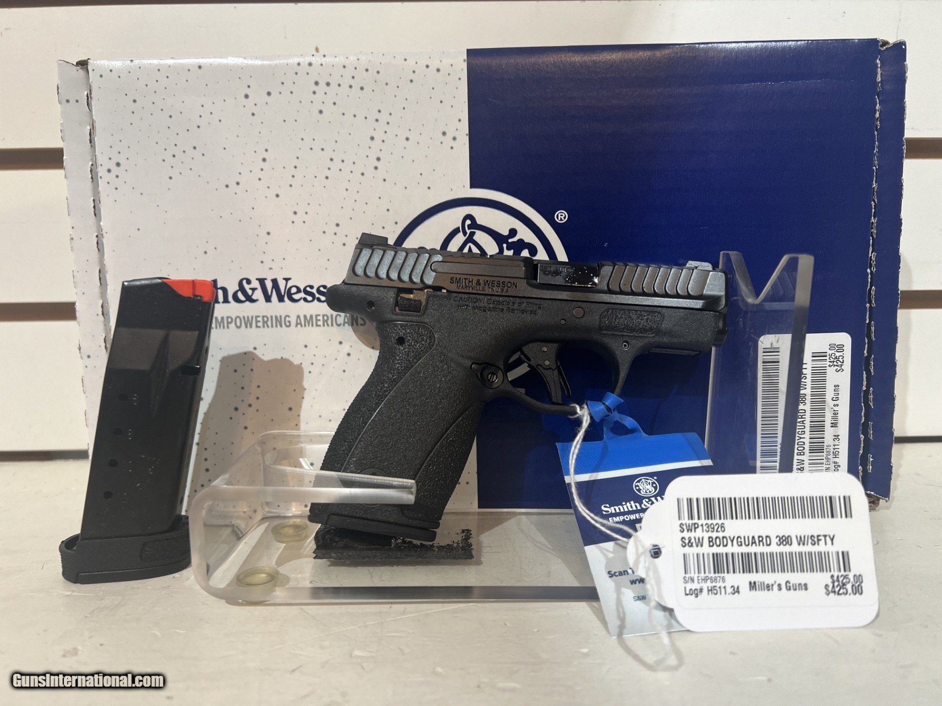 Description: New In Box Caliber .380 acp Magazines 2 10 round capacity Thumb safety SOLD Handgun Caliber: .380 ACP (9x17mm Browning Short) Manufacturer: Smith and Wesson Model: Bodyguard Serial Number: EHP6876 |