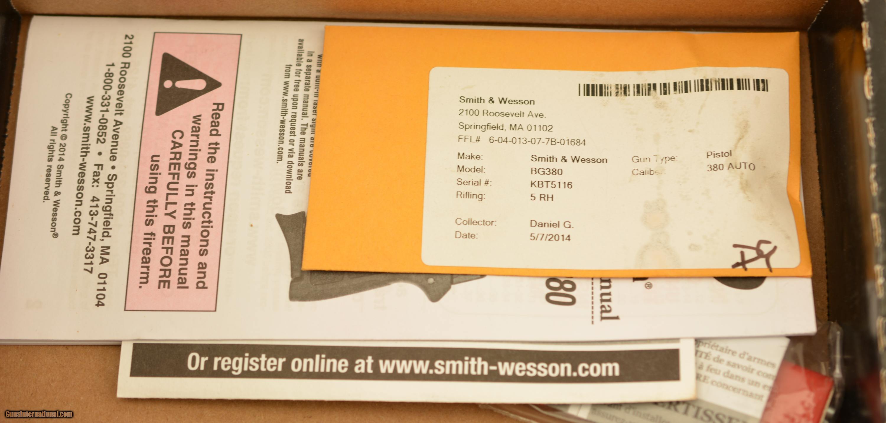 Description: S# KBT 5116 , .380, 2 3/4 inch barrel, bright excellent bore. This double action only pocket pistol was built in 2014 and it remains in excellent condition with a little slide wear on top of chamber. No other scuffs, scratches or blemishes are noted. This comes in the original box with two six shot magazines, one flat bottom, one with a finger extention. Also included is a S+W soft case, owners manual, fired shell, warranty paperwork, and lock. FFL SOLD Manufacturer: S&W Model: Bodyguard Serial Number: KBT 5116 Caliber Info: .380 ACP Gauge Info: .380 ACP |