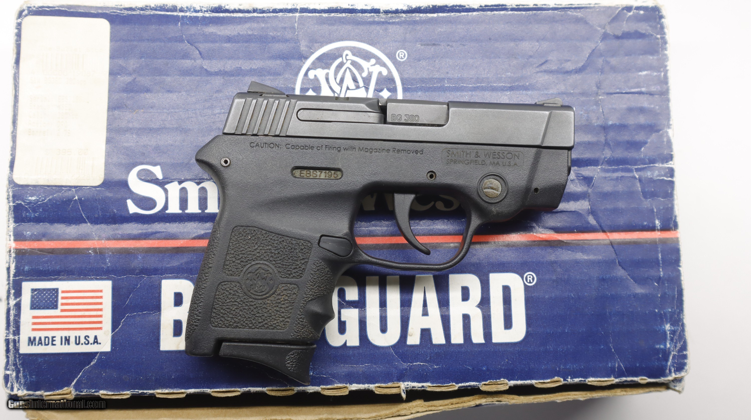 Description: S&W Smith & Wesson Bodyguard 380 Laser used in box with one factory mag. Laser works but needs a battery, very faint. SN is EBS71xx. We will trade for silver and gold. All my guns (except layaway) come with a non-firing, 3 day unconditional return privilege, from the day UPS delivers to your dealer. Buyer pays shipping both ways if the gun comes back. Please make sure to make it to your FFL to inspect within the 3 days. We accept personal check or any certified funds. We can also take your credit card, +3%. Email me if you would like these pictures sent to you, they will come through bigger and better than on the listing page here. We do offer Layaway. Our standard terms are 25% down, 90 days. Initial deposit is not refundable. Layaway guns do not have a return/inspection period. Email me with any questions. Please check your local laws to confirm it is legal to own in your state! Buyer pays $30 shipping and insurance to your FFL in the lower 48. AK, HI or PR is extra. I will ship to California, as long as it is legal, NO PROBLEM! I am a licensed FFL, and will include a copy of my FFL with the gun for your dealer’s records. I will ship to a C&R if the gun is eligible. I will ship to California, but you need to confirm the gun is legal where you are, California or other. WE BUY AND CONSIGN GUNS AND GUN COLLECTIONS! Will travel! I am always looking for good clean, old original Winchesters to buy, consign, or trade, especially Pre '64's model 70's and model 54's. WE ALSO TRADE FOR CLASSIC CARS AND TRUCKS! We also trade for gold and silver. SOLD Handgun Caliber: .380 ACP (9x17mm Browning Short) Manufacturer: Smith & Wesson Model: Bodyguard Condition: Used in box |