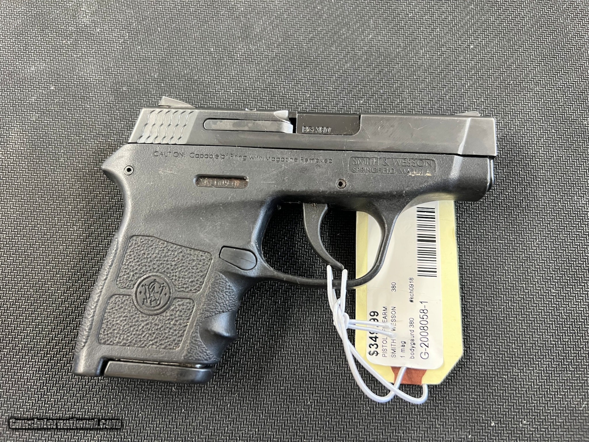 Description: Guns Listing ID: 733239 Weight: 12 oz Sight Style: Adjustable Slide Description: Black Stainless Steel Sight Configuration: Drift Adjustable Weight Range: 9 oz to 15.99 oz Barrel Length Range: 2\" to 2.99\" Length: 2.75\" Frame Material: Polymer Grips: Black Polymer Material: Polymer Color: Black Finish: Armornite Barrel Type: Stainless Steel Frame Finish: Black Accessories: 1 Mag Safety: Manual Sights: Fixed Sights Grips/Stock: Polymer Capacity: 6Rd Caliber: 380 ACP Barrel Length: 2.75\" Action: Semi-automatic Type: Double Action Only Size: Compact Model: M&P Model: Bodyguard Frame/Material: Polymer Finish/Color: Black SOLD Manufacturer: SMITH & WESSON Model: BODYGUARD 380 Caliber Info: .380 ACP Condition: Used - Non-Certified Barrels: 3 BARREL Finish: BLACK |