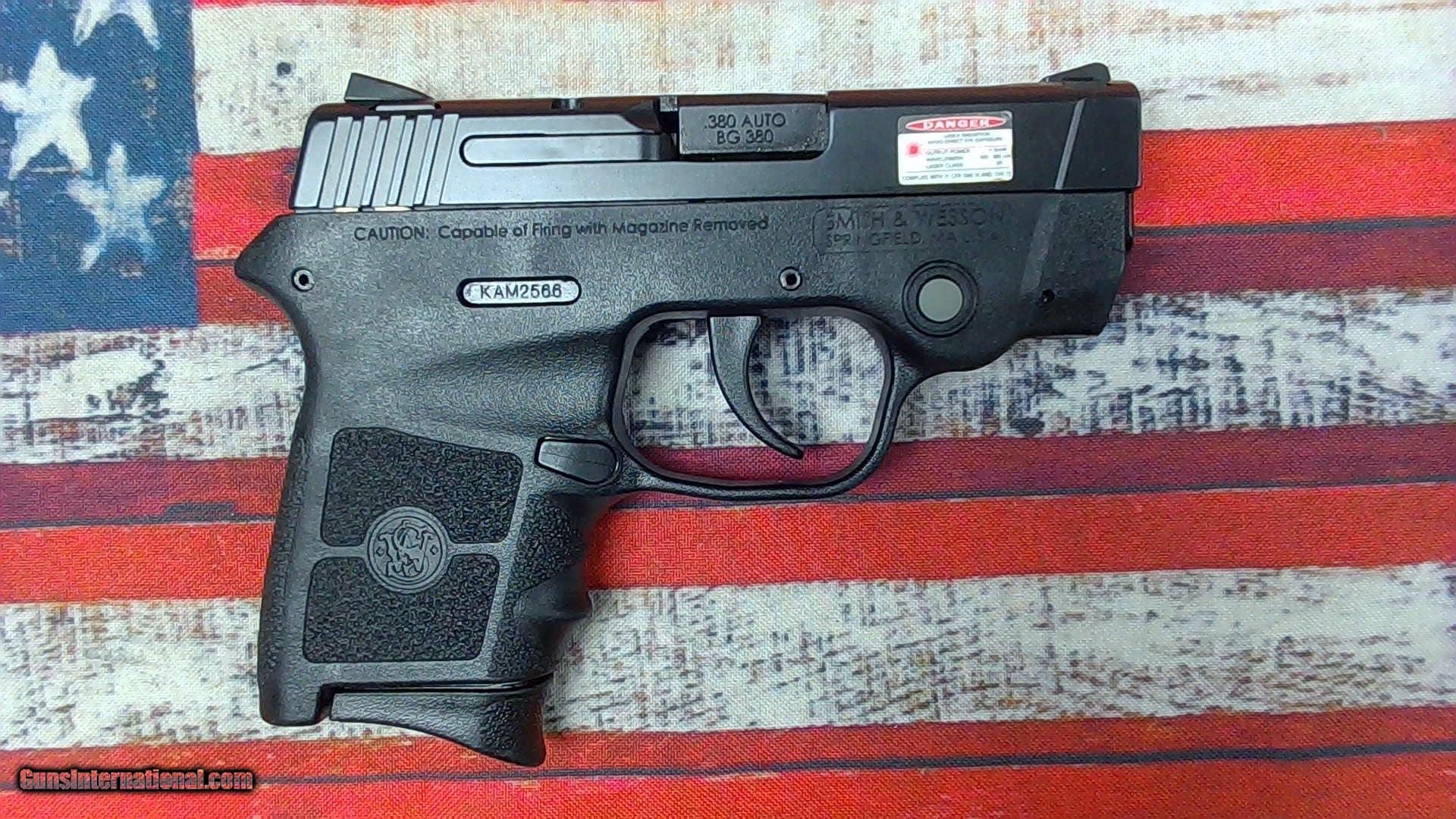 Description: Guns Listing ID: 873562 Very good condition Smith & Wesson Bodyguard 380. This pistol is great for a personal carry item. It is slim and light weight, perfect for a purse or waistband. This model has an Insight brand red laser installed and comes with the original box and one 6 round magazine. The Smith & Wesson M&P Bodyguard .380 ACP Pistol is a double-action pistol with a 6+1 magazine capacity that features a crimson trace laser sight as well as stainless-steel, drift-adjustable front and rear sights. Stainless-steel barrel with a matte finish. Polymer grip and frame. Includes 1 magazine and a nylon carry case. SOLD Manufacturer: SMITH & WESSON Model: BODYGUARD 380 Caliber Info: .380 ACP Condition: Used - Non-Certified Barrels: 2.8 BARREL |