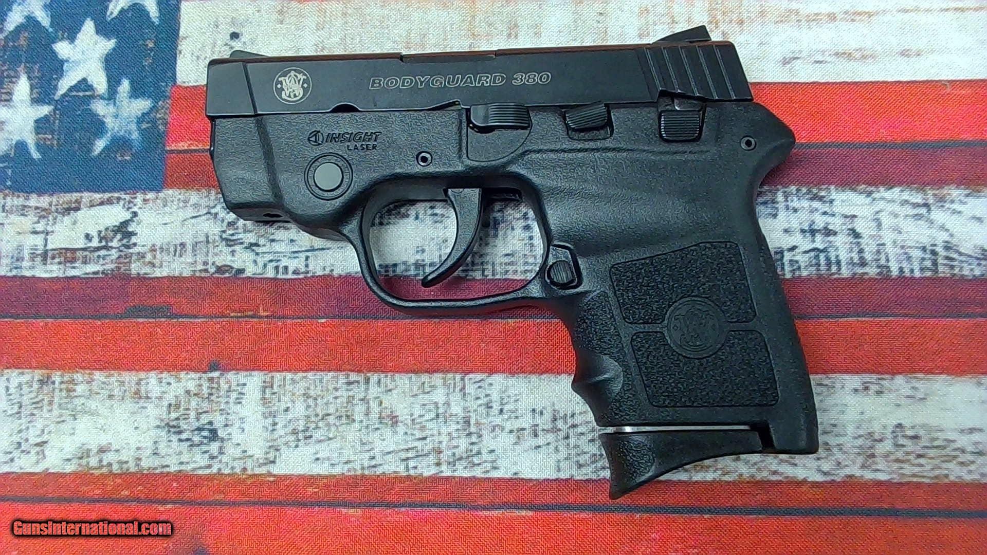 Description: Guns Listing ID: 873562 Very good condition Smith & Wesson Bodyguard 380. This pistol is great for a personal carry item. It is slim and light weight, perfect for a purse or waistband. This model has an Insight brand red laser installed and comes with the original box and one 6 round magazine. The Smith & Wesson M&P Bodyguard .380 ACP Pistol is a double-action pistol with a 6+1 magazine capacity that features a crimson trace laser sight as well as stainless-steel, drift-adjustable front and rear sights. Stainless-steel barrel with a matte finish. Polymer grip and frame. Includes 1 magazine and a nylon carry case. SOLD Manufacturer: SMITH & WESSON Model: BODYGUARD 380 Caliber Info: .380 ACP Condition: Used - Non-Certified Barrels: 2.8 BARREL |