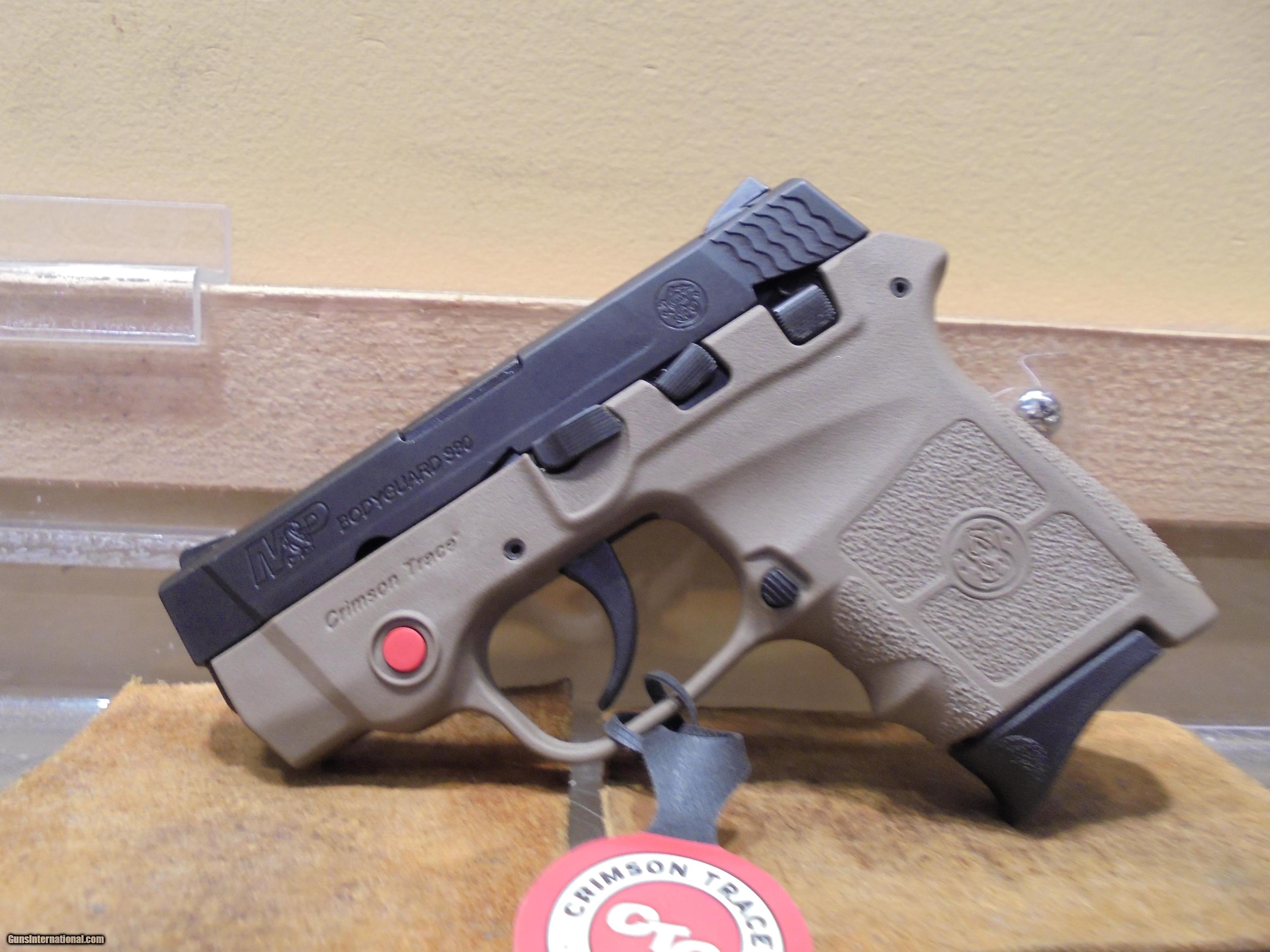 Description: NEW Smith & Wesson Bodyguard Pistol 10168 380 ACP, 2.75 in, FDE Synthetic Crimson Trace Grip, FDE 6 Rd PRICE REFLECTS PAYMENT BY MONEY ORDER / CASHIERS CHECK. A 3% PREMIUM IS ADDED FOR CREDIT CARDS ****PLEASE CALL IN THE WITH THE SELLER’S INVENTORY NUMBER**** WE DO NOT SHIP FIREARMS AND/OR FIREARMS’ PARTS OUT OF THE 50 UNITED STATES, SO DON’T ASK PRICE REFLECTS PAYMENT BY MONEY ORDER / CASHIERS CHECK. A 3% PREMIUM IS ADDED FOR CREDIT CARDS. WE DO OFFER A LAYAWAY PLAN. YOU CAN LAYAWAY FOR 30, 60, OR 90 DAYS. THERE IS A $5.00 CHARGE FOR EVERY 30 DAYS ITEM IS ON LAYAWAY. WE ALSO REQUIRE A 20% DOWN PAYMENT ON LAYAWAY ITEM. LAYAWAYS ARE NON REFUNDABLE. HERE IS HOW THIS PROCESS WORKS. YOU WOULD CALL US AT 540-337-9218 WITH LISTER # TO PURCHASE THE GUN. THEN ONCE I HAVE RECEIVED PAYMENT AND AN FFL (FEDERAL FIREARMS LICENSE) FROM A LICENSED DEALER IN YOUR AREA OF YOUR CHOICE. WE WILL THEN SHIP THE GUN TO THEM. YOU WOULD THEN PICK UP THE GUN AT YOUR LOCAL DEALER AND DO PAPER WORK THERE. DOMINION OUTDOORS 15 ANGELA COURT FISHERSVILLE ,VA 22939 540-337-9218 540-337-2422 fax ****PLEASE CALL IN THE WITH THE SELLER’S INVENTORY NUMBER**** ***PLANO HARD CASES AVAIABLE FOR PURCHASE $18.99 WITH THE PURCHASE OF A FIREARM.** SOLD |