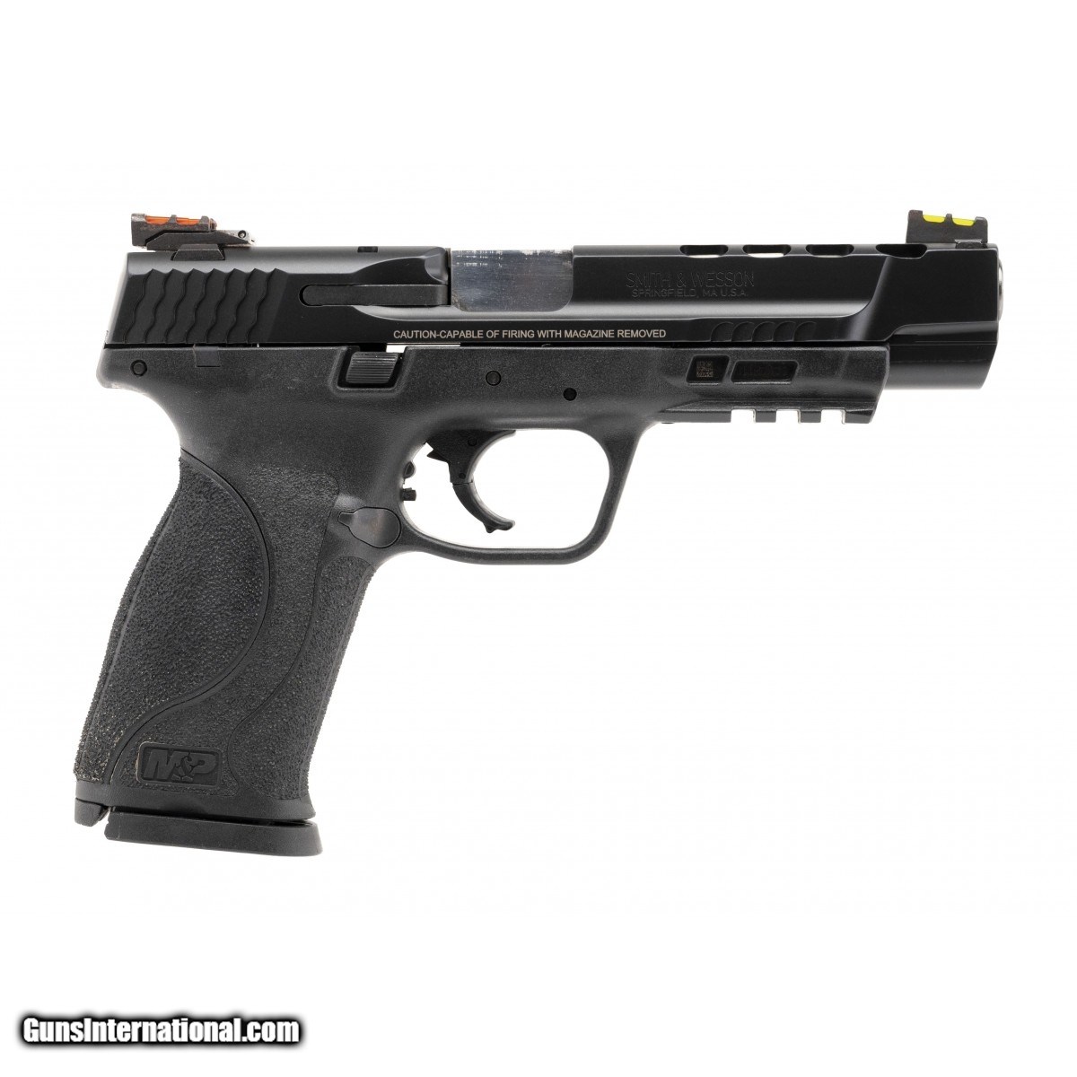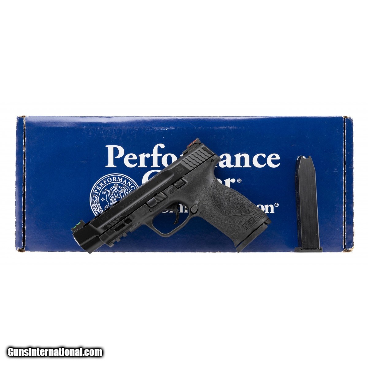 Performance Center M&P9 with a 5"" Ported barrel, polymer frame, black, interchangeable back straps, no thumb safety, fiber optic sights. Overall in excellent condition comes with box and extra magazine.