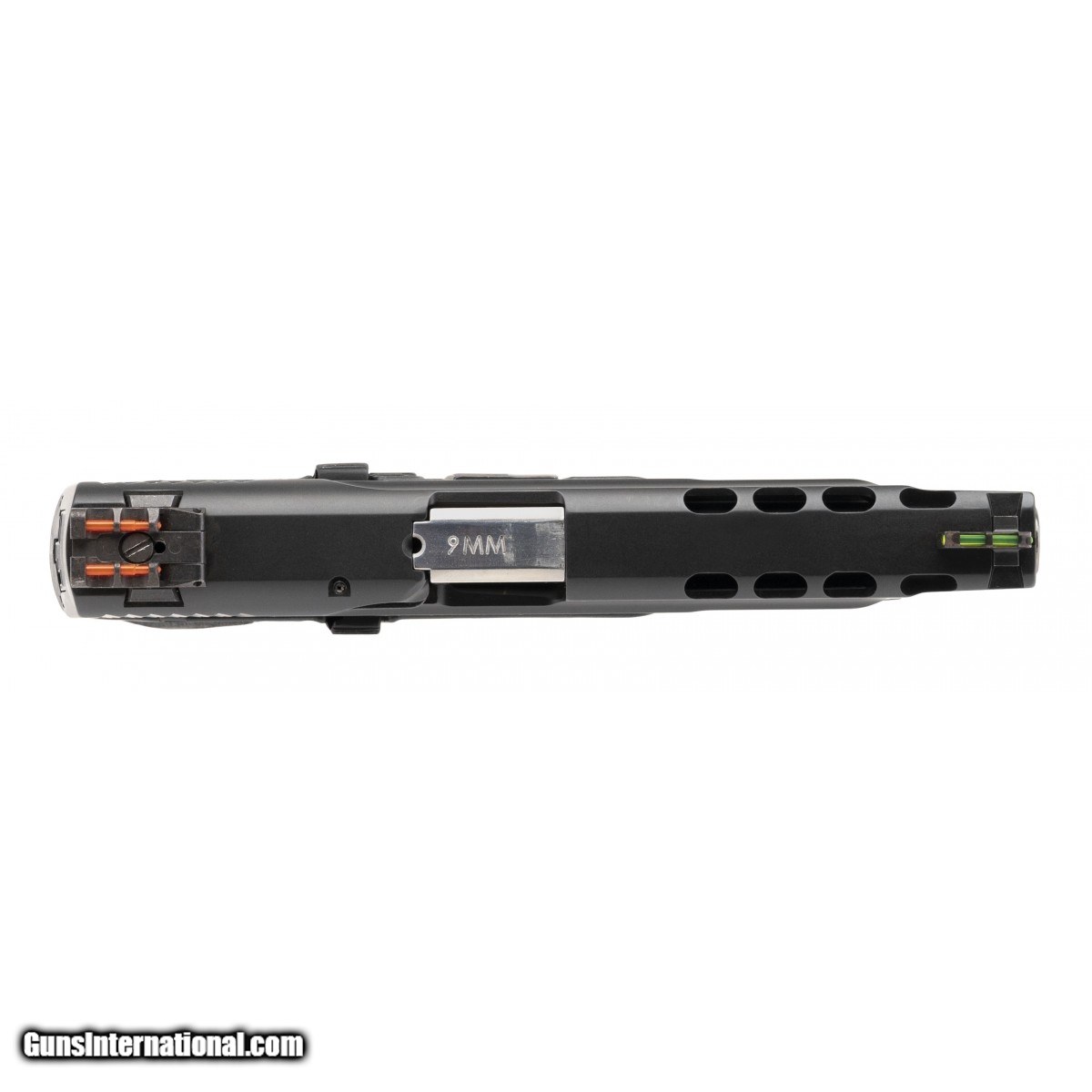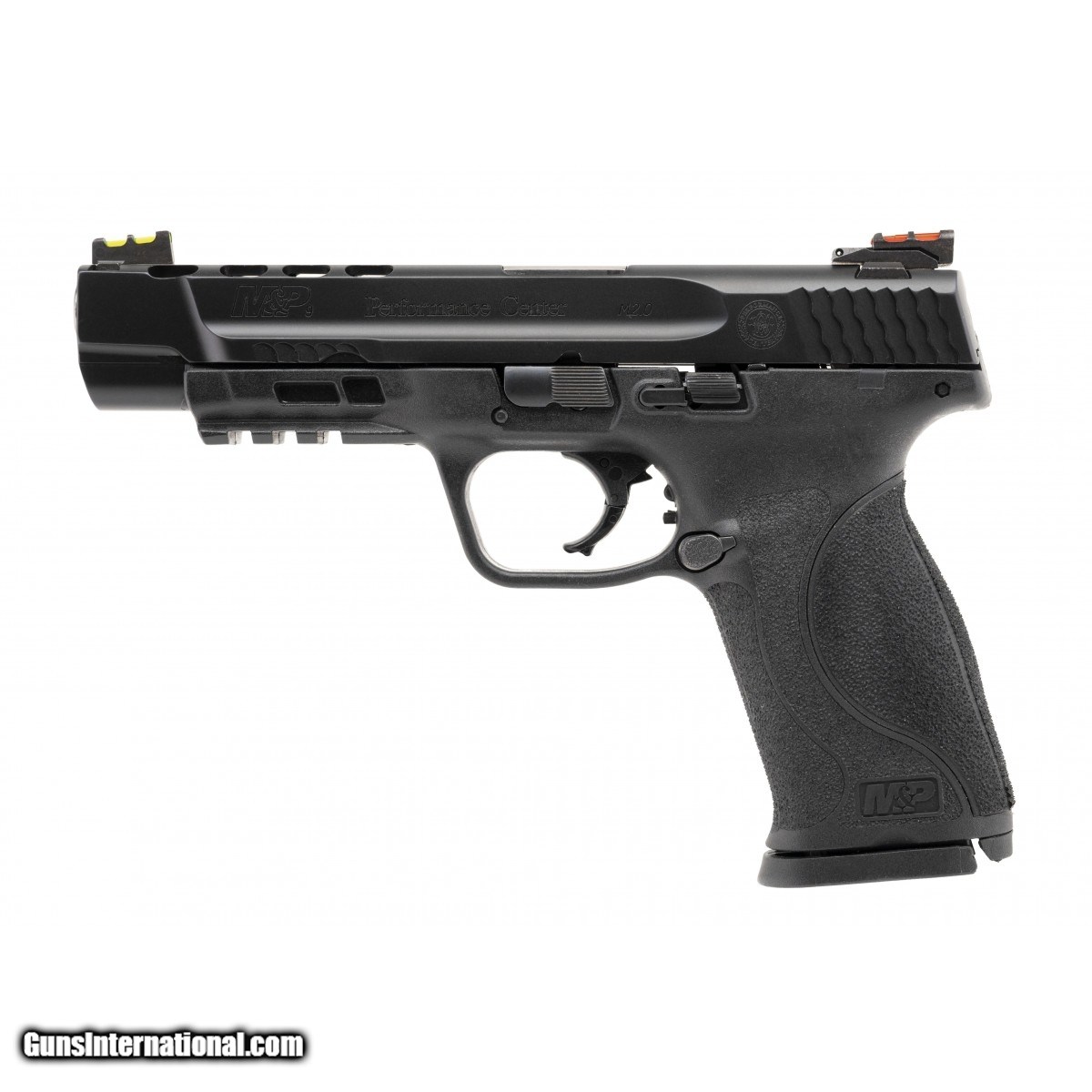 Description: " Performance Center M&P9 with a 5"" Ported barrel, polymer frame, black, interchangeable back straps, no thumb safety, fiber optic sights. Overall in excellent condition comes with box and extra magazine. SOLD |
