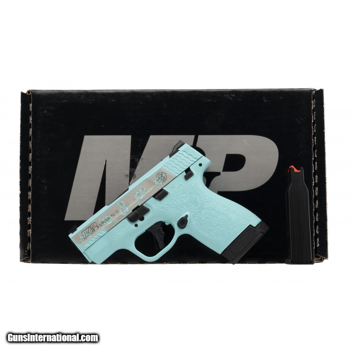 Strike fired micro-compact with impressive 13+1 capacity. Comes with spare 10 round magazine, has thumb safety, 3.1"" barrel, white dot sights. In a tiffany blue finish with a floral pattern. New. UPC:688099401665.