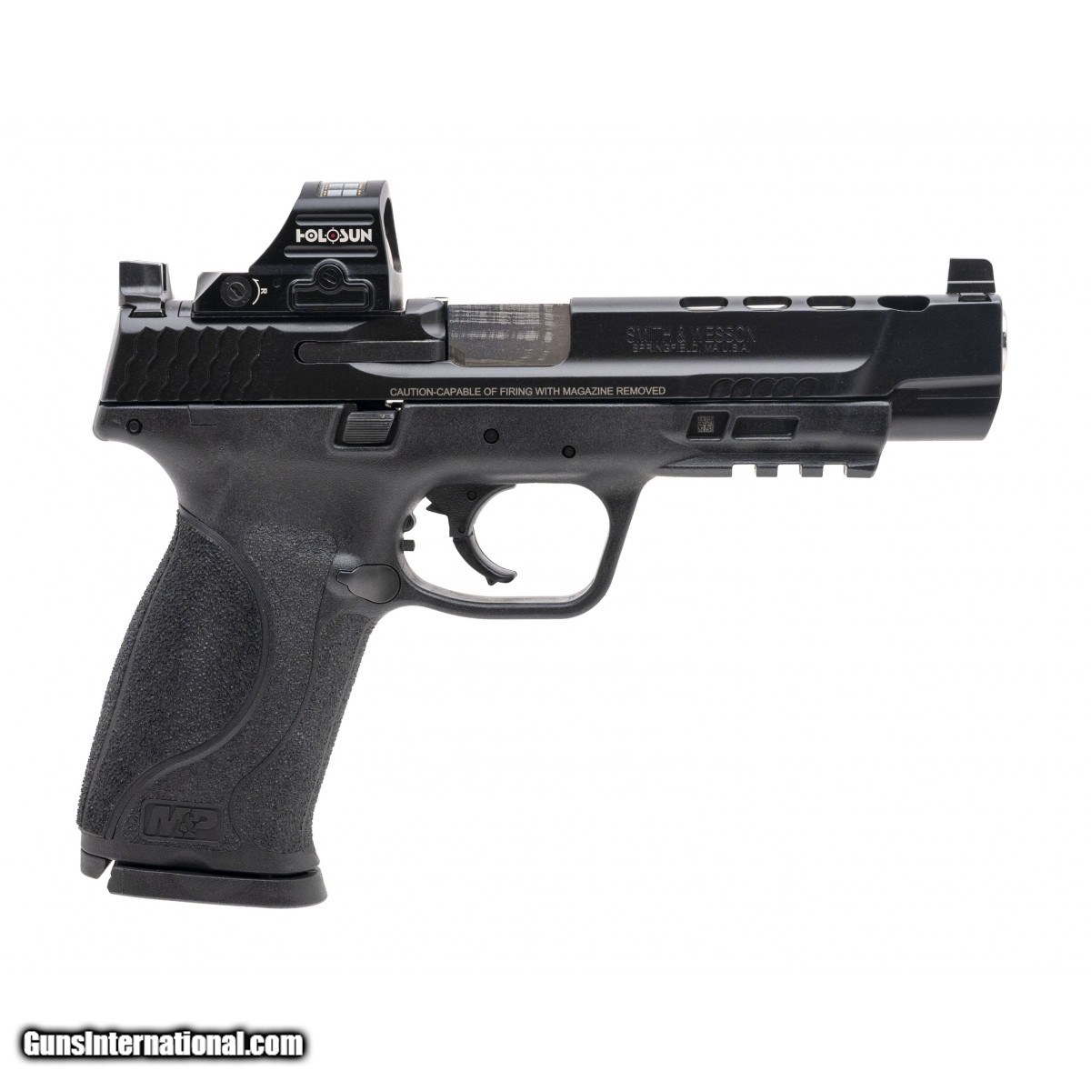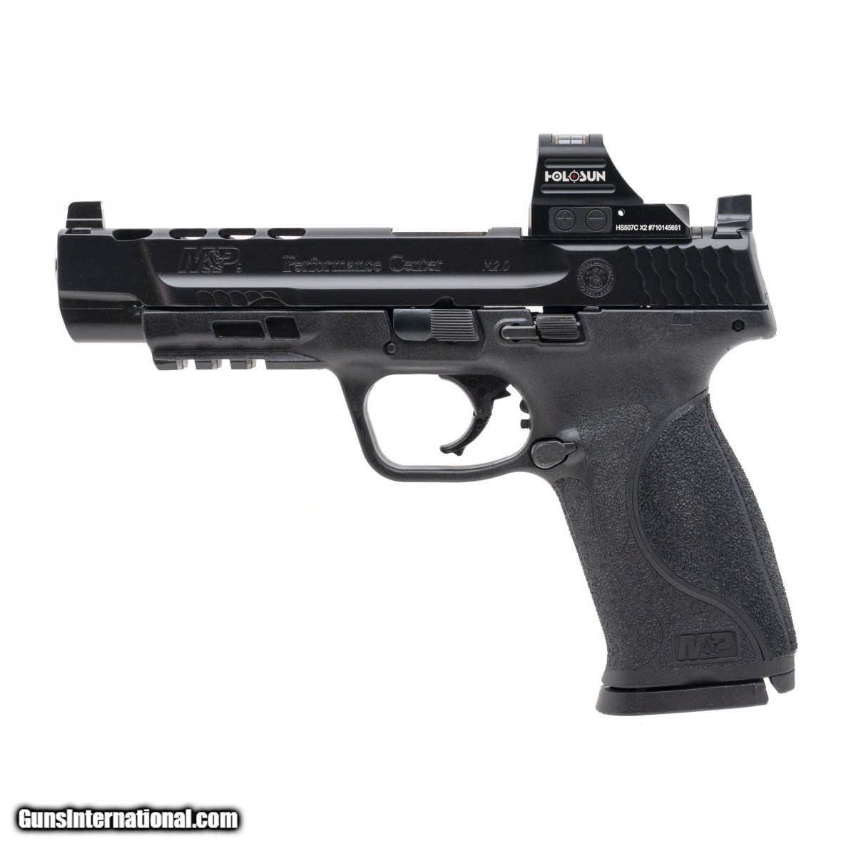 SN: NYJ8340. Modern production. 9mm with a 5"" stainless barrel. Bore is in excellent condition. S&W full size striker fired Performance Center polymer frame pistol with ported slide. Finish is in excellent condition. Grips are in excellent condition. Overall condition is excellent. Comes with Holosun red dot sight.