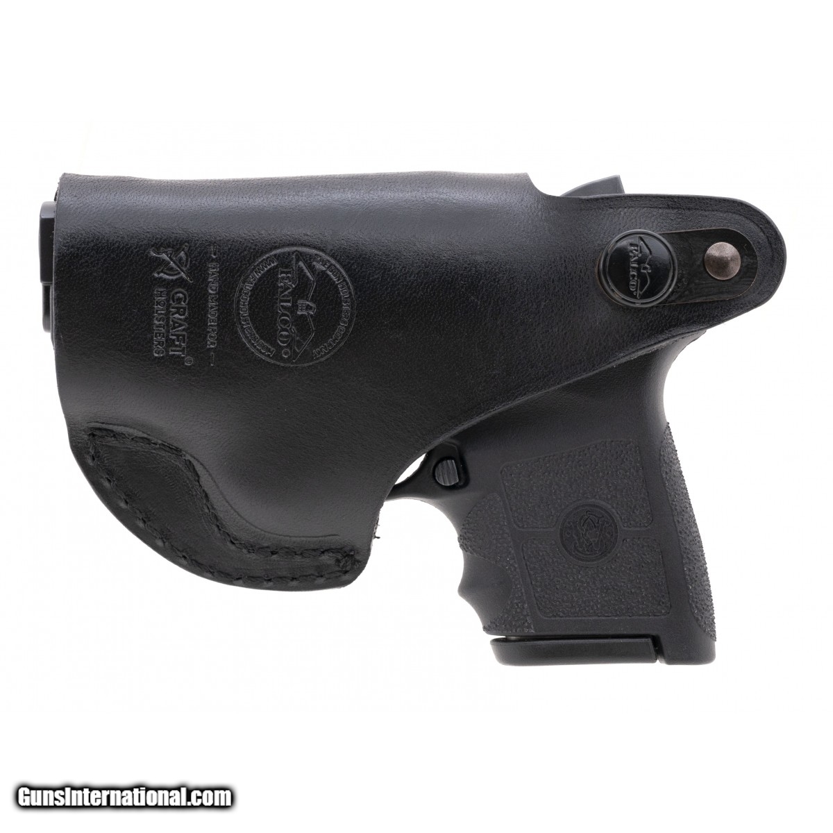 Description: " SN: KJD3679. Double action pocket pistol with 2.75"" barrel, under barrel Crimson Trace laser and manual safety. Overall excellent condition. Comes with box, extra magazine and Falco holster. SOLD |