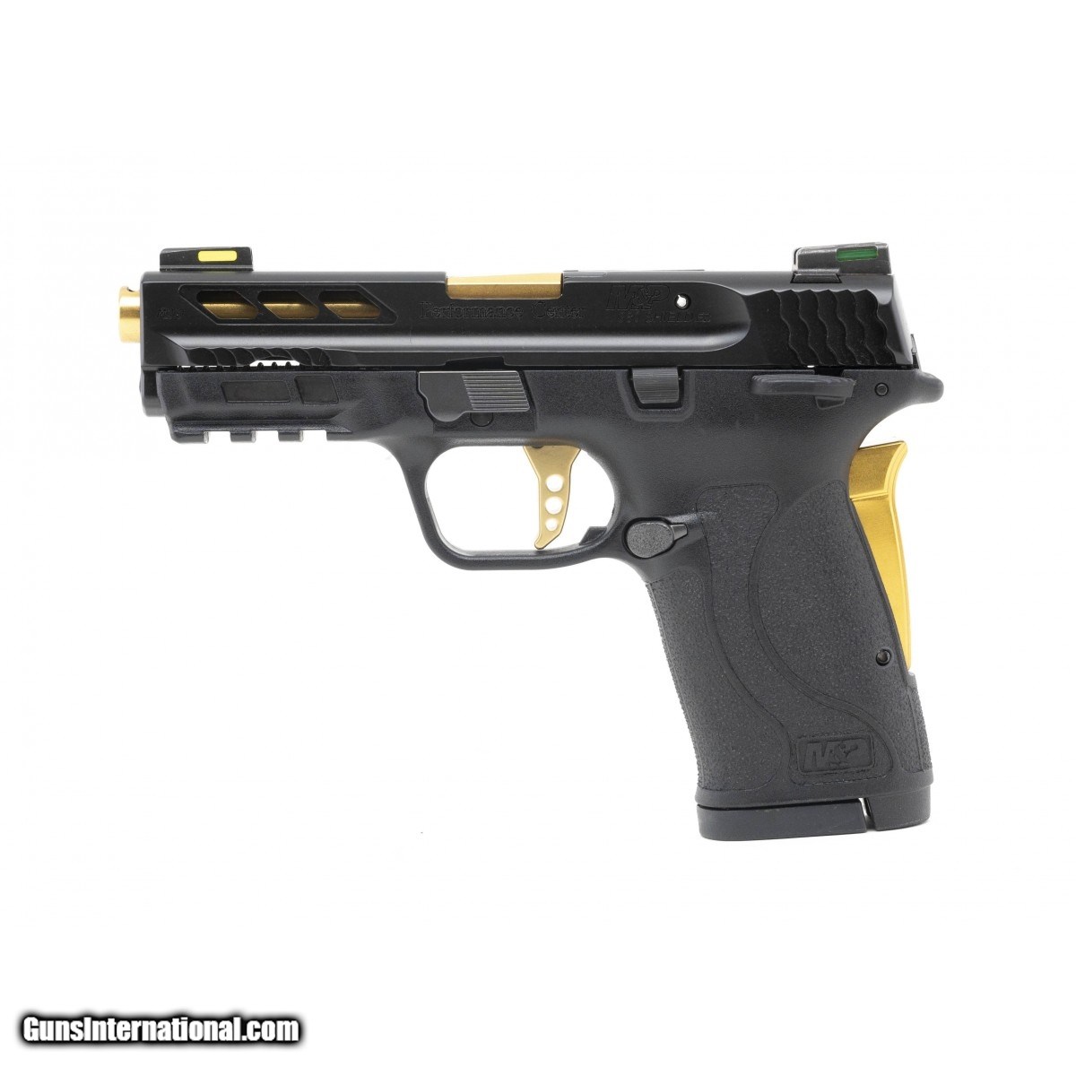 Performance Center model with enhanced trigger, titanium nitride barrel, ported slide and barrel, fiber optic sights, and cleaning kit. New. 8 round. UPC:022188879179