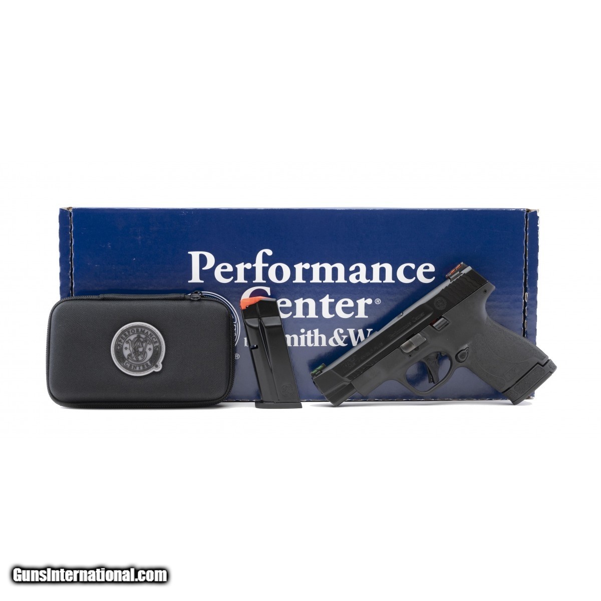 Performance Center model with enhanced flat face trigger. Comes with a 4"" barrel and fiber optic sights. Comes with one 10 round magazine and one 13 round magazine. NEW. UPC 022188886504