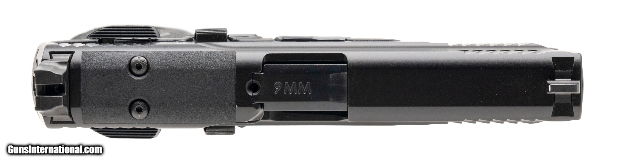 Description: "SN: NLP2983. Modern production, 9mm with an 4.25"" barrel. Bore is bright with strong rifling. Compact striker fired pistol with an optic cut, flat-faced trigger, and ambidextrous safety controls. Overall condition is excellent. Comes with box and an extra magazine. SOLD |