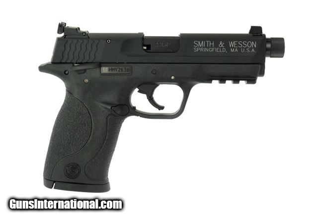 Smith & Wesson M&P Compact .22 LR caliber pistol. Semi-auto .22 LR handgun with ambi safety and threaded barrel. Comes with extra magazine. New.