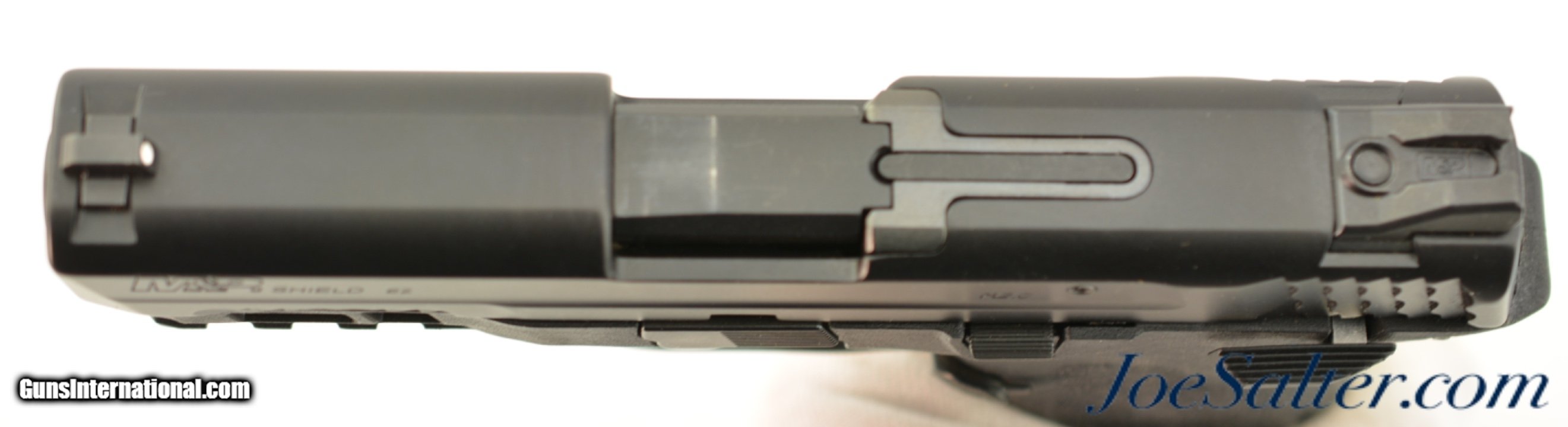 Description: Serial #NJV3259, 9mm luger, 3.675 inch barrel with a bright, excellent bore. This is the Smith & Wesson model M&P9 Shield EX TS pistol featuring a polymer frame, below barrel optics rail, 3 dot sights, grip safety, ambidextrous thumb safety and 4 - single stack 8+1 magazines. It comes in the original box numbered to the gun with the instruction manual. The gun is in excellent plus condition retaining virtually all, 98-99% original finish on the barrel, frame and slide with very faint handling marks. A great compact 9mm pistol from Smith & Wesson. FFL SOLD |
