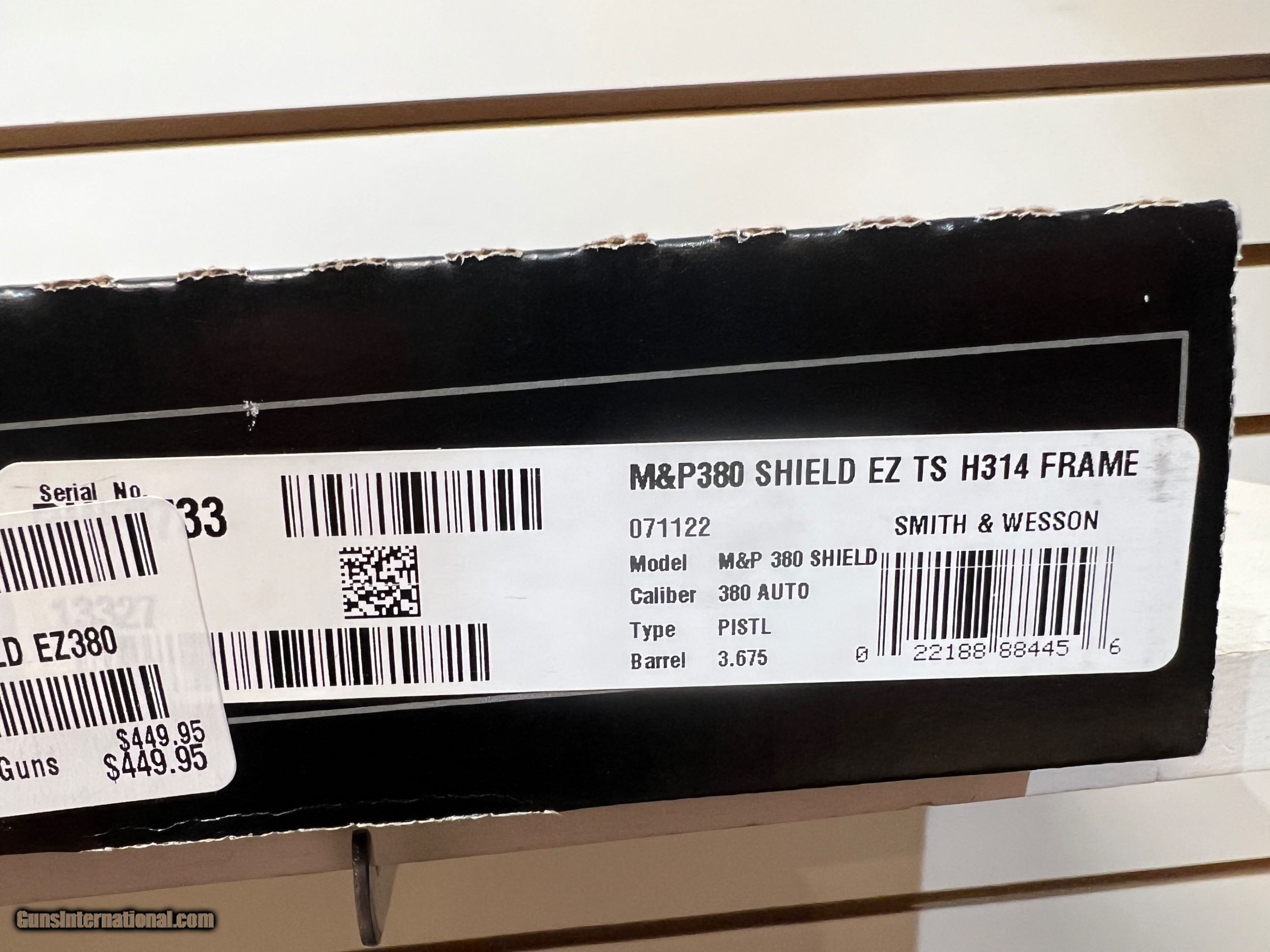 Description: new M+P380 SHIELD EZ 380ACP ORC/BK 13327 new in box (MODEL:M+P380); (ACTION:SINGLE ACTION); (CAPACITY:8 + 1);( OVERALLLENGTH:6.7); (SIGHTS:FS: WHITE DOT/RS: ADJ WHTE DOT); (STOCKFRAMEGRIPS:POLYMER FRAME ORCHID POLYMER FRAME POLYMER FRAME); (MAGAZINE:2 8 RD.); (WEIGHT:18.5 OZ.); (BARREL LENGTH:3.675); (DRILL-TAPPED:FALSE); (SEMI:SEMI); (AUTO PISTOL:AUTO PISTOL) Buyer pays shipping Millers Gun Center Located in New Castle, Delaware "Home of TAX-Free shopping" No Credit Card Fees Send Gun international inquiry and then call 302-328-9747 to complete your purchase SOLD Serial Number: RHF0733 |