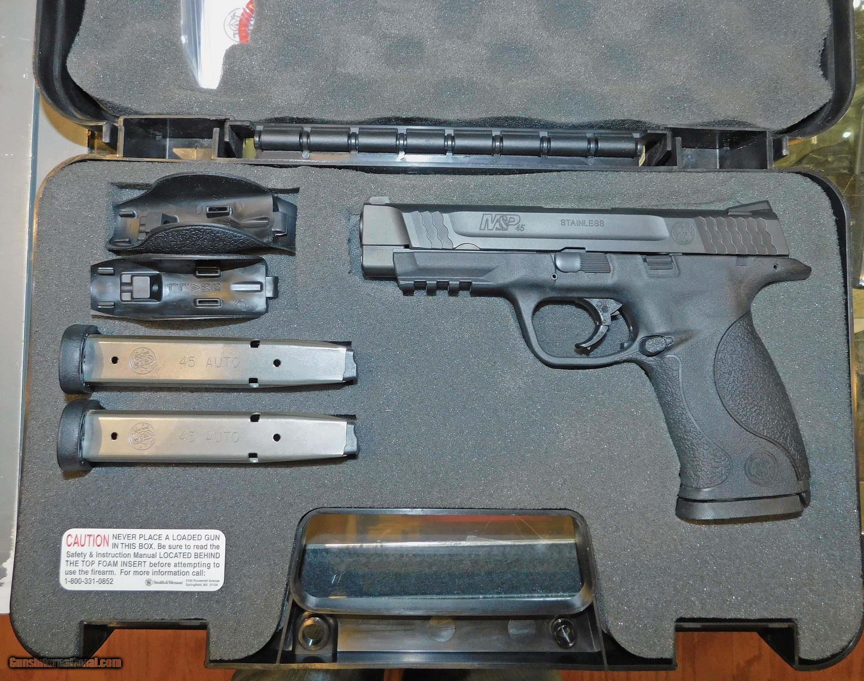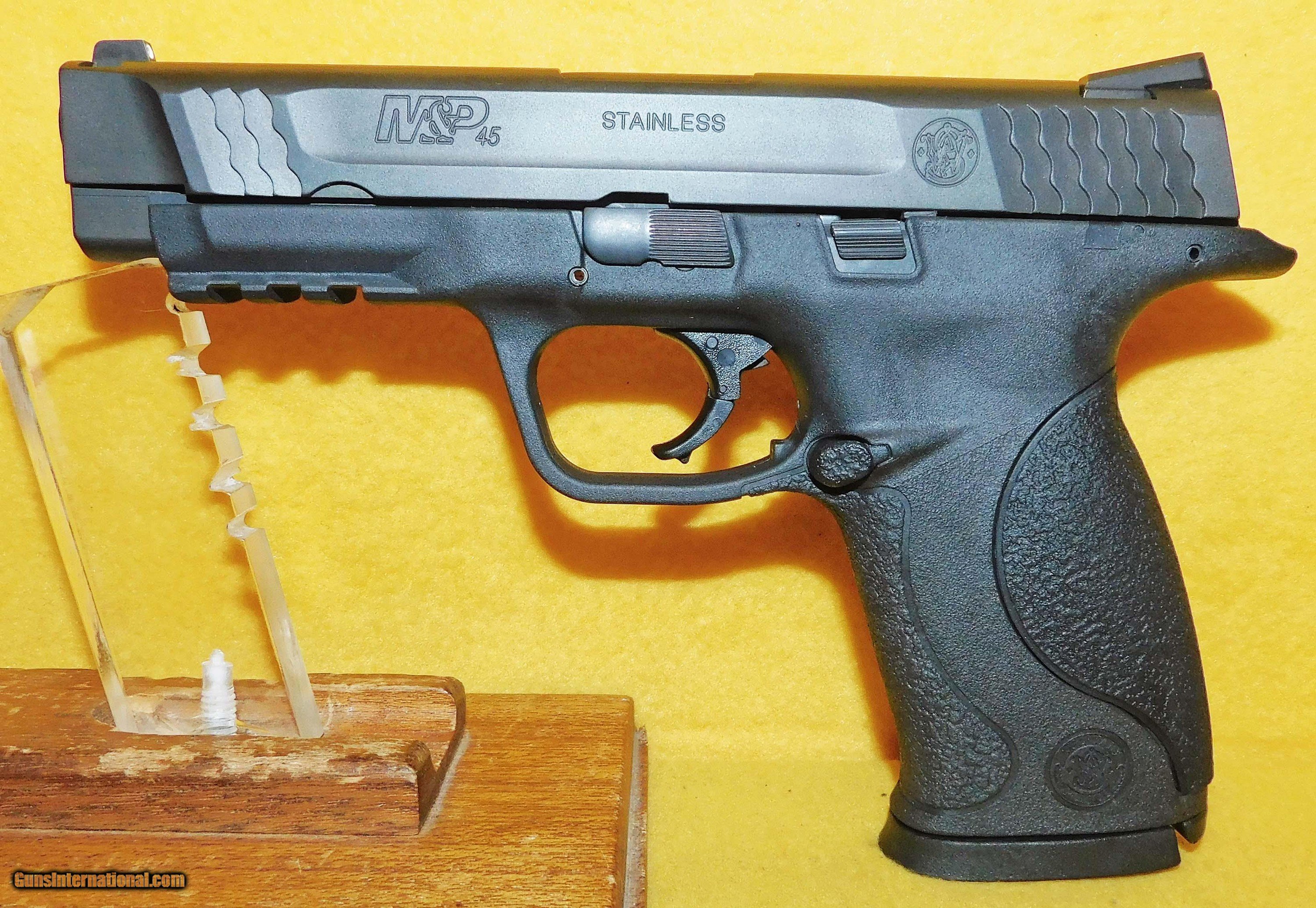 Description: S&W M&P 45 IN .45 ACP CAL., WITH 4 .5" BARREL. COLOR BLACK. CONDITION 98%. SERIAL NUMBER MRD5626. S&W MODEL M&P 45 (POLICE) IN .45 ACP CALIBER, MIRROR BORE, GRIPS EXCELLENT WITH EXTRA BACK STRAPS, COMES WITH THREE TEN ROUND FACTORY MAGAZINES, HARD CASE WITH PAPERS, 98% OVERALL CONDITION, OUR STOCK # D4783 SOLD |