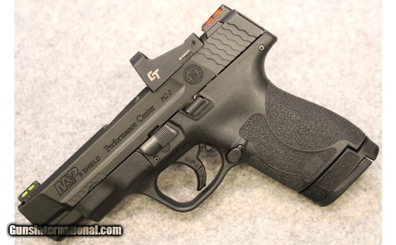 Description: This S&W M&P 9 Shield M2.0 Performance Center chambered in 9mm Luger features, blue finish, fiber optic sights, Crimson Trace red-dot, loaded chamber view, and trigger safety. 9mm Luger SOLD Metal Condition: Great Bore Condition: Bright Barrels: 4 Weight: 1.4 lbs. Item Location: Hoffman Estates, IL |