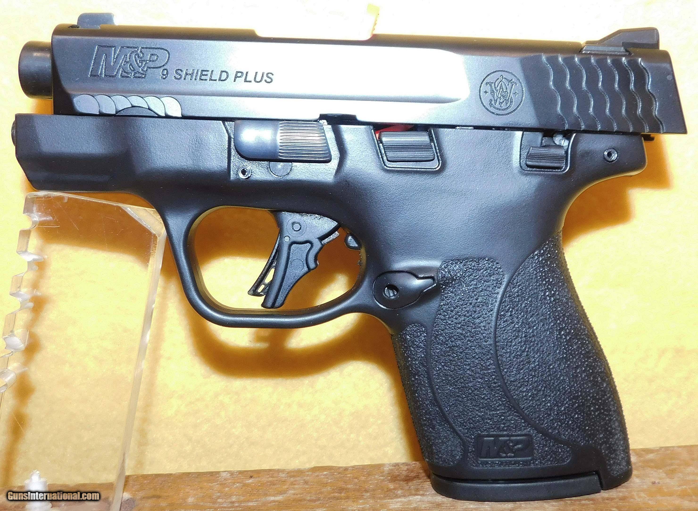 Description: S&W M&P 9 SHIELD PLUS IN 9MM CAL., WITH 3 .1" BARREL. COLOR BLACK. CONDITION 98% LIKE NEW. SERIAL NUMBER JNE0693. S&W MODEL M&P 9 SHIELD PLUS IN 9MM CALIBER, MIRROR BORE ,GRIPS EXCELLENT, COMES WITH SPARE FACTORY MAGAZINE, BOX, 98% LIKE NEW OVERALL CONDITION, OUR STOCK # D5838 SOLD |