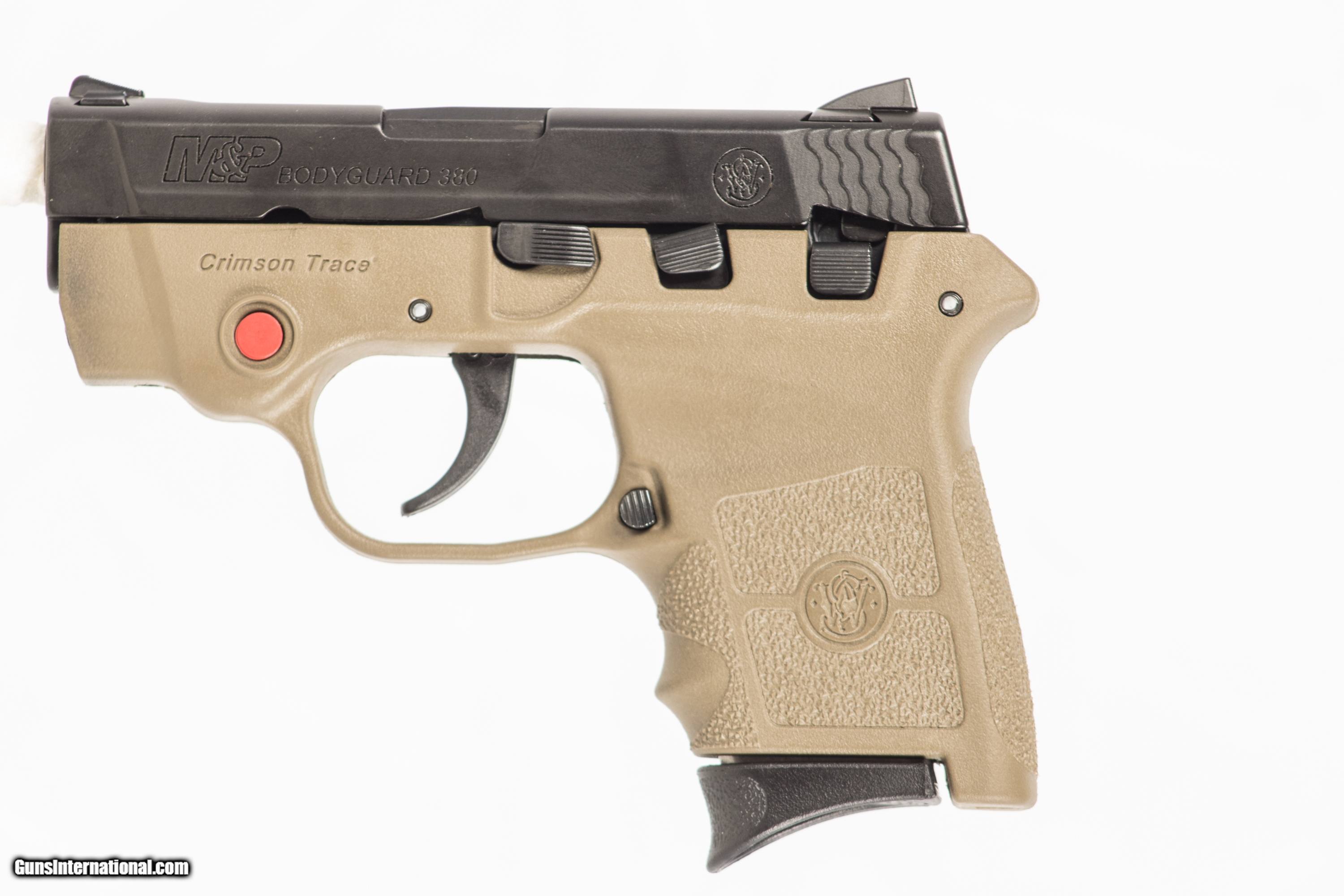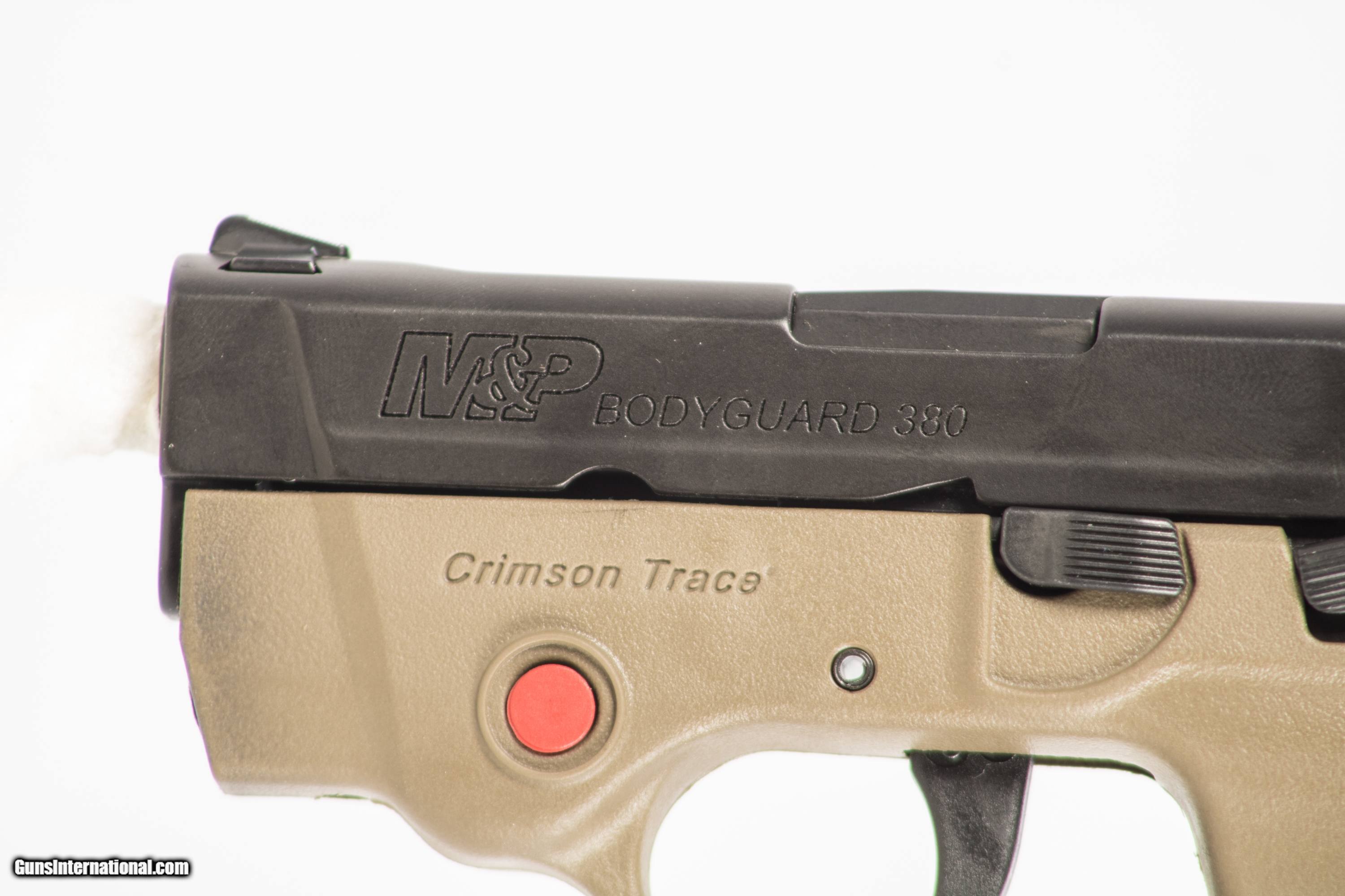 Smith & Wesson M&P Bodyguard 380 chambered in 380 ACP with a 2 3/4 inch barrel bright & shiny bore soft case 2 extra magazines and Crimson Trace laser sight. This gun is in excellent condition and is covered by Dury's Lifetime Warranty.