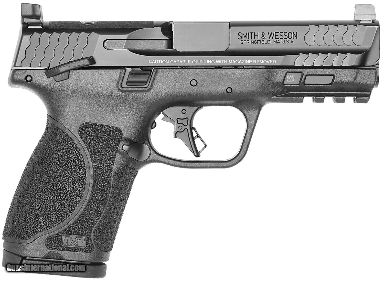 Description: Smith & Wesson 14099 M&P M2.0 *MA Compliant Compact 9mm Luger 10+1 4" Black Armornite Stainless Steel Barrel, Black Cerakote Optic Cut/Serrated Stainless Steel Slide & Polymer Frame w/Picatinny Rail ON IT'S BEST PRICE! BUY NOW S&W efforts to increase efficiency with its enhanced features like an adjustable palmswells, flat-face trigger design, aggressive slide serrations and enhanced grip texture. Other features are C.O.R.E. System - Optic cut slide with plates designed to accommodate most major red dots on the market; Tall 3_Dot sights; 180 grip angle, the M&P platform offers users a natural point of aim allowing them to get on target quicker. In addition, our aggressive grip texture allows shooters to manage recoil and keep a firm grip. Includes four interchangeable palmswell grip inserts and two magazines.