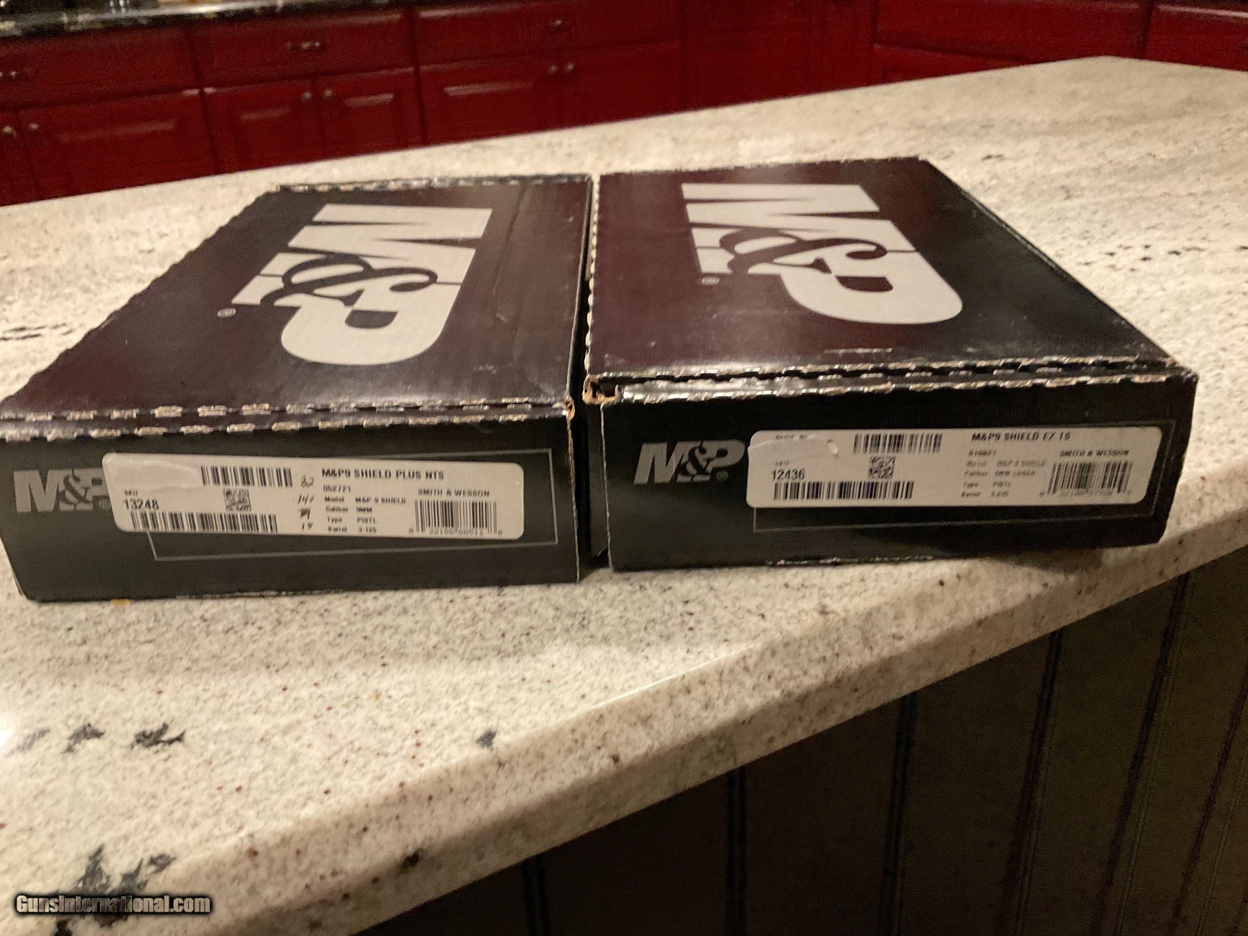 Description: Two for One Smith & Wesson 9mm Pistols for Sale!! Cleaning out the safe of duplicate firearms and will sell these two for one reasonable price. These two firearms have only been out of the box to take the attached photos. They are new. M&P9 Shield EZ TS serial # NJK617* M&P9 Shield Plus NTS serial# JME705* $975 + $25 shipping/insurance SOLD
