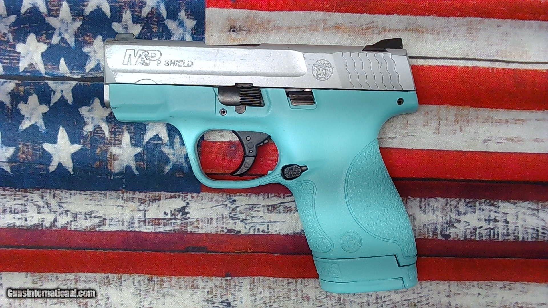 Description: Guns Listing ID: 1338584 This is a great pistol for conceal carry. It‚‚s slim design allows for an easy carry in your purse or waistline. This pistol has several blemishes, but is 100% operational. The slide has obvious signs of holster wear. Sale is for pistol as shown with one 8 round magazine. Smith & Wesson’s new M&P SHIELD™ is a slim, concealable, lightweight, striker-fired polymer pistol. Available in 9mm and .40 S&W, the new M&P SHIELD features a slim design combined with the proven and trusted features found in the M&P Pistol Series. From the pistol’s easily concealed one-inch profile to its optimized 18-degree grip angle, the M&P SHIELD offers professional-grade features that provide consumers with simple operation and reliable performance. Chambered in 9mm and .40 S&W for proven stopping power, the M&P SHIELD features a high-strength polymer frame with a black, durable, corrosion resistant finish, coated stainless steel slide and barrel. Both models are standard with a 3.1-inch barrel, which contributes to an overall length of 6.1 inches and an unloaded weight of 19 ounces. For fast tracking and smooth target acquisition, the M&P SHIELD is standard with a 5.3-inch sight radius and has been enhanced with a short, consistent trigger pull measuring 6.5 pounds. Featuring a quick and audible reset made possible by the striker-fired action, the M&P SHIELD allows multiple rounds to be placed on target both consistently and accurately. These photos represent the exact firearm for sale. As with many used firearms, this item may contain scratches and/or signs of wear. This is not always the case but should not be unexpected. No original box or other accessories SOLD Manufacturer: SMITH & WESSON Model: 9mm M&P9 SHIELD Caliber Info: 9MM LUGER (9X19 PARA) Condition: Used - Non-Certified Barrels: 3 BARREL Finish: ROBIN‚‚S EGG BLU |
