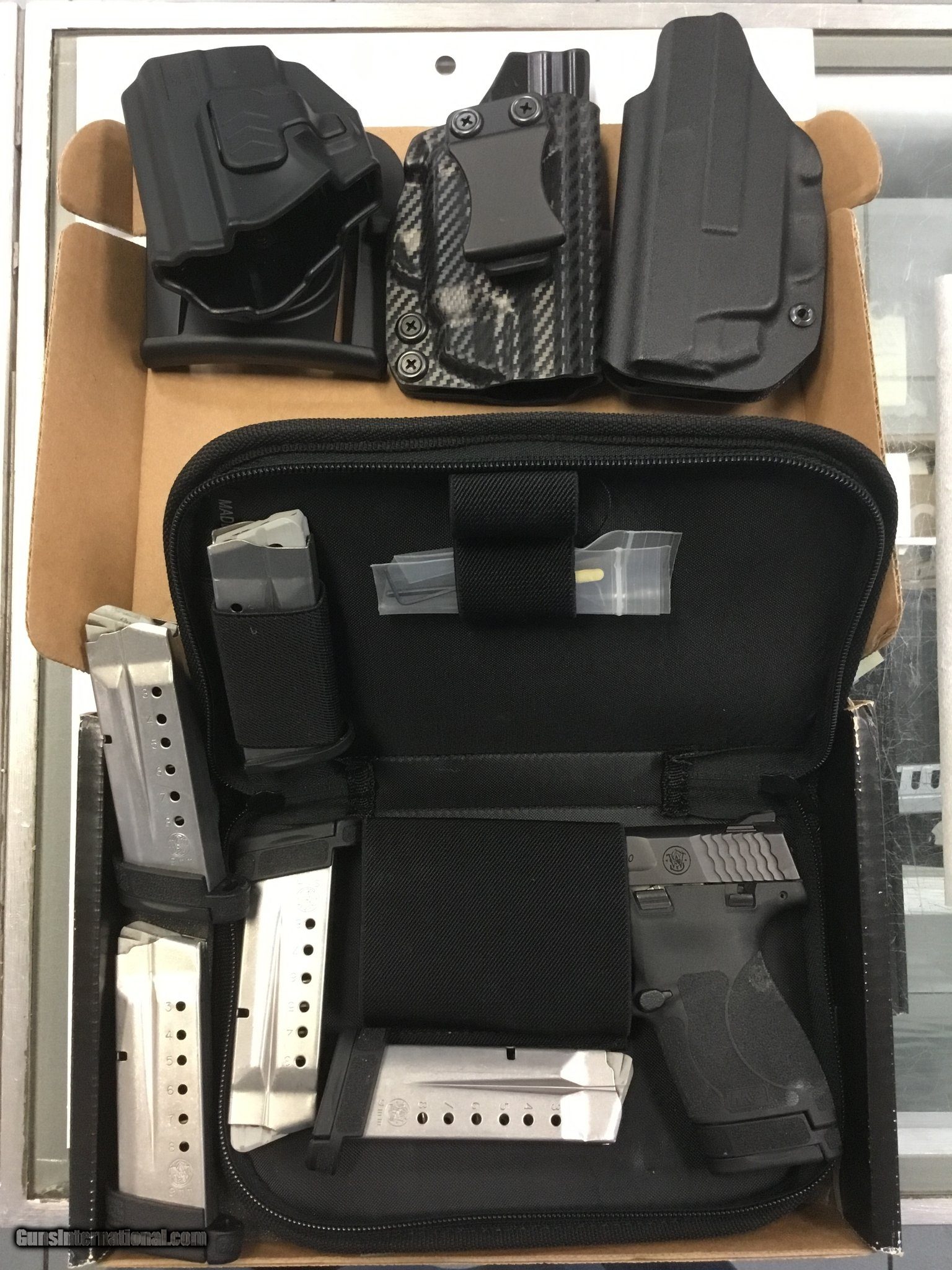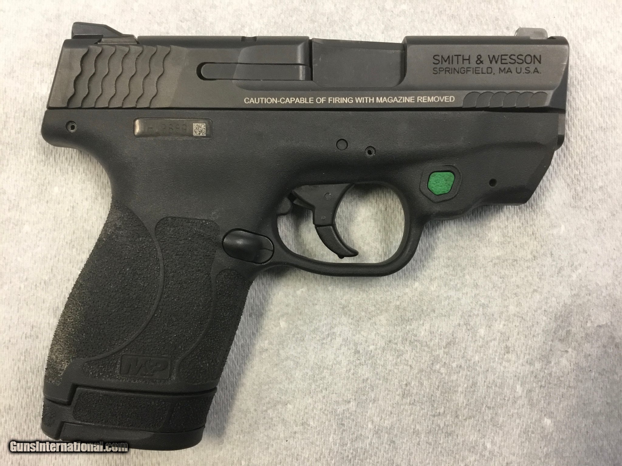 Description: Guns Listing ID: 1376931 Smith & Wesson M&P Shield 2.0 in 9mm with a 3.125\" barrel and an integrated green laser (which needs a battery). The gun is in very good condition with very little wear, and this package is beyond complete; You‚‚re getting the gun, original box w paperwork and lock, an M&P pistol case, 3 holsters, and 6 magazines. If you were to buy the holsters and magazines new you‚‚d pay about the same we‚‚re charging for the whole package, so grab this up and save a t SOLD Manufacturer: SMITH & WESSON Model: 9mm M&P9 SHIELD M2.0 thumb safety with crimson trace laser Caliber Info: 9MM LUGER (9X19 PARA) Condition: Used - Non-Certified Barrels: 3.125 BARREL Finish: BLACK |