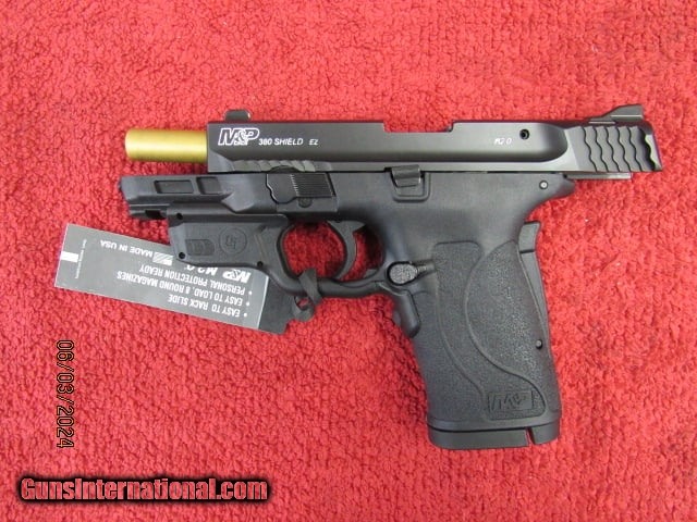 Description: Guns Listing ID: 1301456 PRE OWNED ONCE FIRED- EXCELLENT CONDITION INCLUDES BOX AND MANUAL BARREL HAS BEEN TITANIUM NITRIDE COATED (GOLD) 2 FACTORY 8 ROUND MAGAZINES Crimson Trace LG-459G Laserguards with Green Laser, Heavy Duty Construction and Instinctive Activation for Smith & Wesson M&P9EZ, M&P380EZ INSTALLED Smith & Wesson, M&P380 Shield EZ M2.0, Internal Hammer Fired, Semi-automatic, Polymer Frame Pistol, Micro-Compact, 380ACP, 3.68\" Barrel, Armornite Finish, Black, 3 Dot Sights, 8 Rounds, 2 Magazines Armornite finish Grip texture optimized to size and recoil Picatinny-Style equipment rail for lights or lasers Reversible Magazine release Grip Safety SOLD Manufacturer: SMITH & WESSON Model: CUSTOM SMITH AND WESSON M&P SHIELD 380 EZ Caliber Info: .380 ACP Condition: Used - Non-Certified Barrels: 3.68 BARREL |
