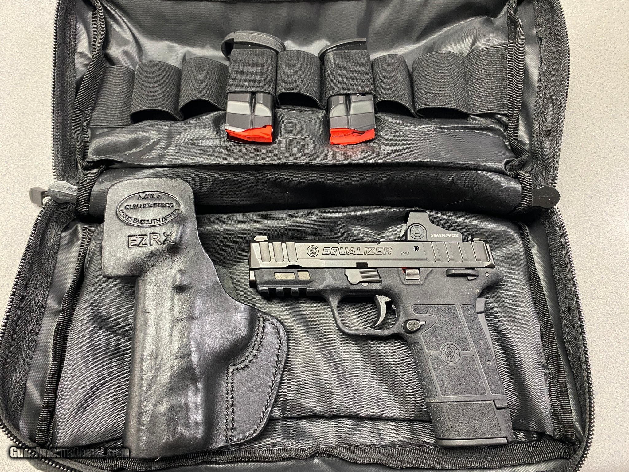 Description: Guns Listing ID: 575458 SMITH & WESSON EQUALIZER W/ CASE, SWAMPFOX, 3 HOLSTERS & 2 EXTRA MAGS CALIBER - 9MM SOLD Manufacturer: SMITH & WESSON Model: EQUALIZER Caliber Info: 9MM LUGER (9x19 PARA) Condition: Used - Non-Certified Barrels: 4" BARREL Action: SEMI AUTOMATIC Finish: black |