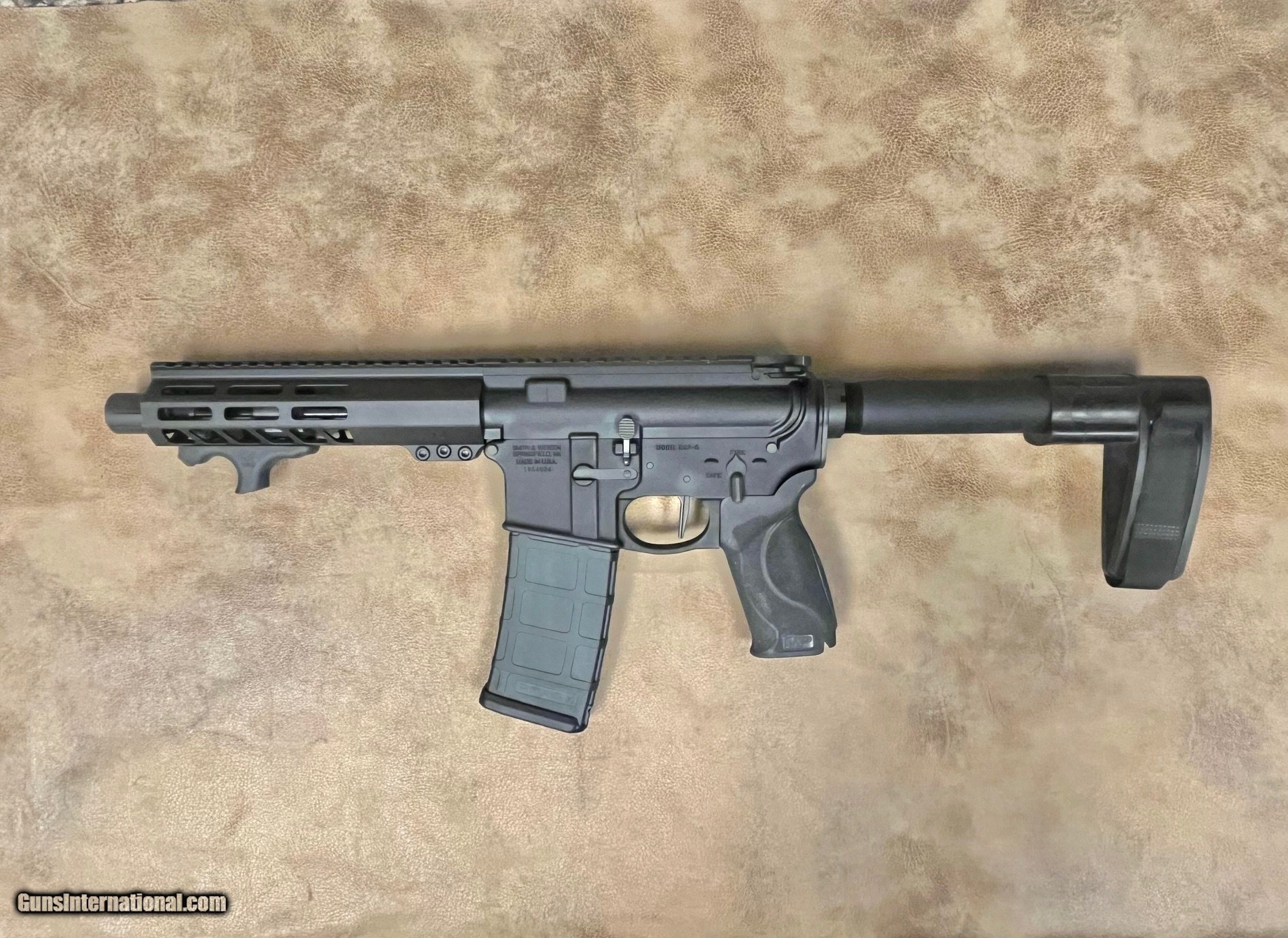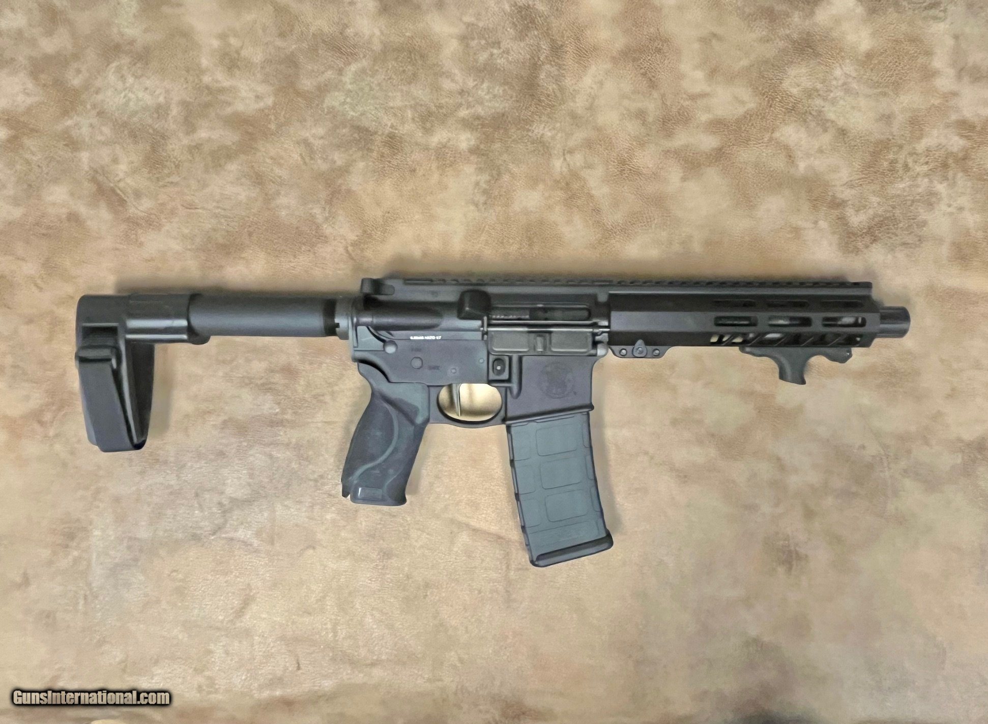 Description: Guns Listing ID: 483359 Smith & Wesson M&P15 Pistol 5.56 NATO 7.5\" Barrel, linear compensator, 7.75\" MLOK handguard, Flat trigger, M&P stippled pistol grip with Medium interchangeable back strap, (1) 30-Round PMAG magazine, SB Tactical fixed pistol brace, Viridian MLOK red laser hand stop, no box SOLD Manufacturer: SMITH & WESSON Model: M&P 15 Caliber Info: 5.56X45MM NATO Condition: Used - Non-Certified Barrels: 7.5 Finish: black |